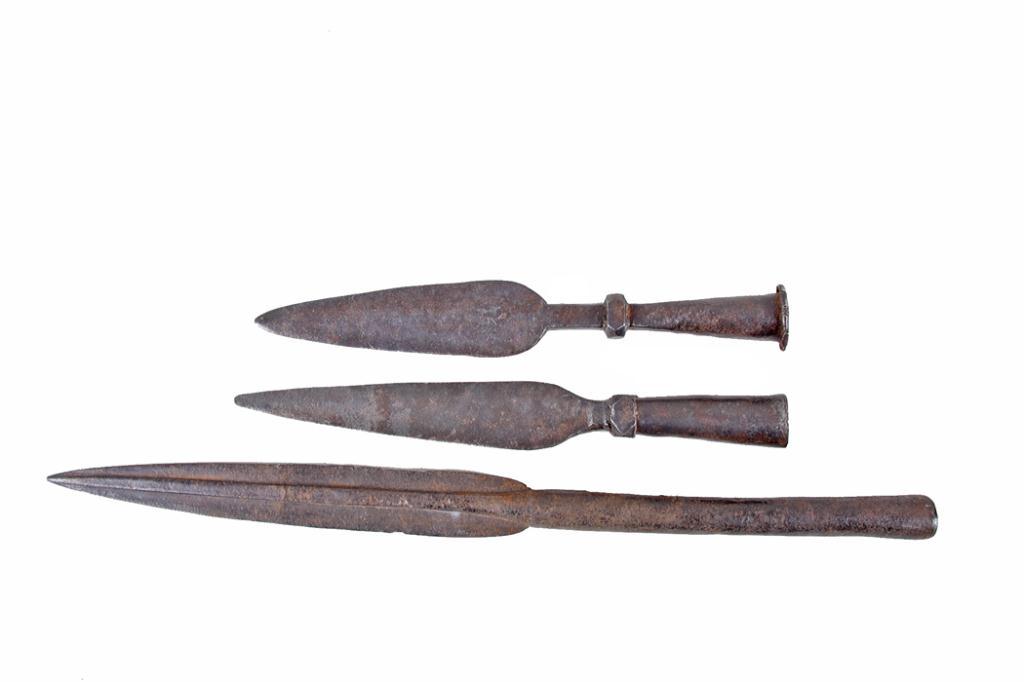 Collection of 3 Colonial Era Lance Heads Hand forged, largest one measures 23" overall, the two smal