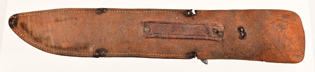 "Recuerdo" on one side of 6.75" blade, with "Mexico" etched on the other, 11" overall , with tooled "Mexico" leather sheath. Horse Head pommel knife with horn handle, 8" blade marked "Mexico" on one side, 12.75" overall length. Eagle-head pommel knife with ivory grips, 9" heavy Bowie style blade marked "Mad in Mexico" 13.5" overall length, with original appearing "Made in Mexico" sheath.