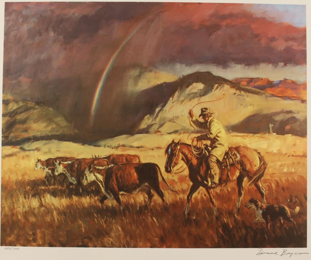 Duane Bryer. All hand signed in pencil and numbered. Unframed, various sizes with cowboy scenes.