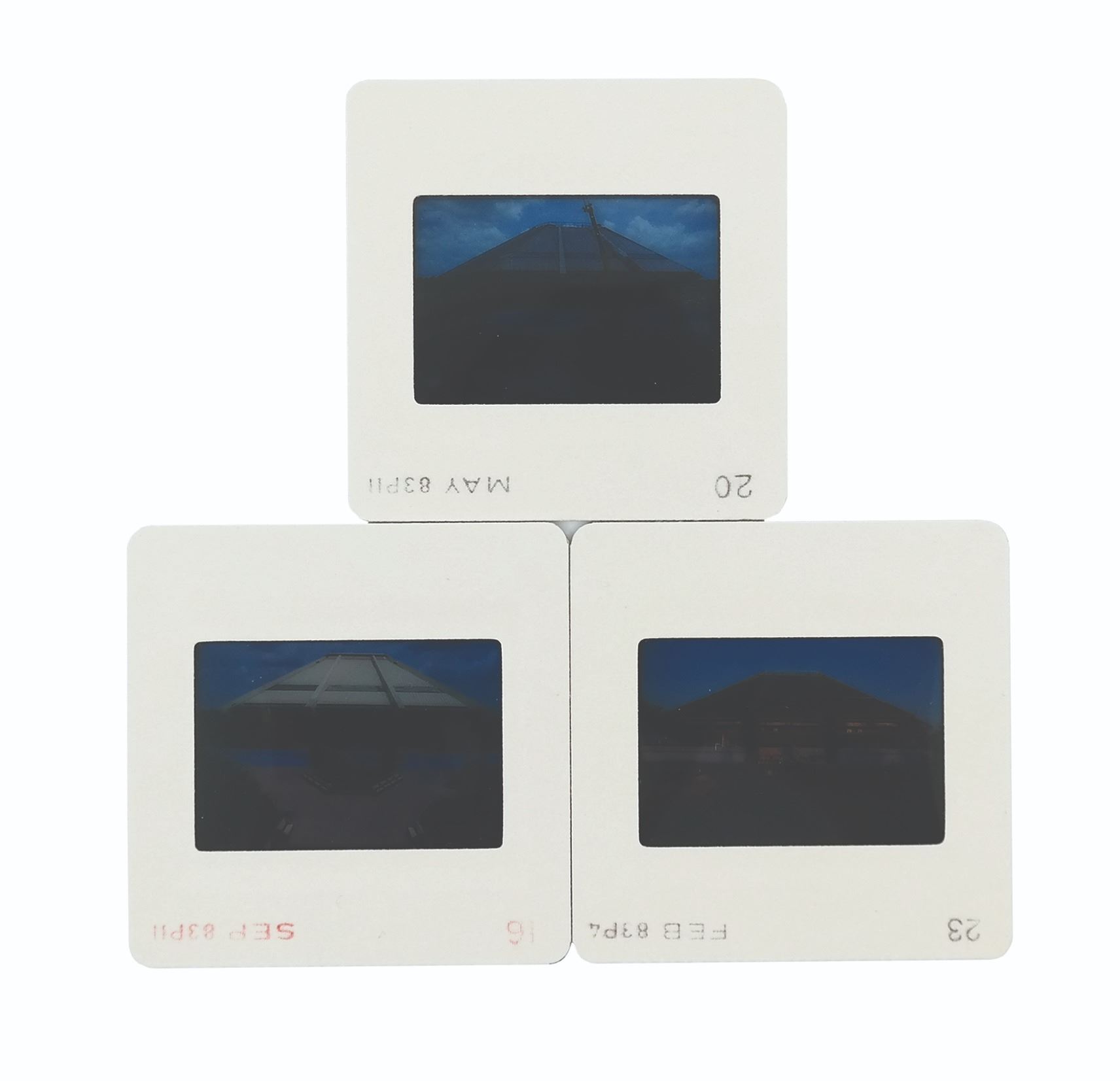 (Epcot, 1983) A collection of (3) slides featuring the construction of the Horizons Pavilion at Epcot. These slides feature the pavilion at various stages of the construction process, and provide a wonderful glimpse into how Horizons was built. Each slide measures approximately 2"x2" and is in very good condition.