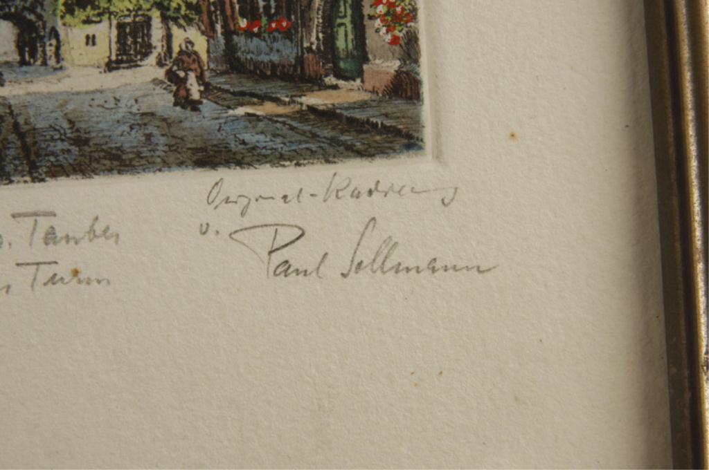 Collection of 3 Small Etchings All are hand colored, signed by Paul Sollmann, image sizes are 4"x5", all in pewter colored frames.All are hand colored, signed by Paul Sollmann, image sizes are 4"x5", all in pewter colored frames.