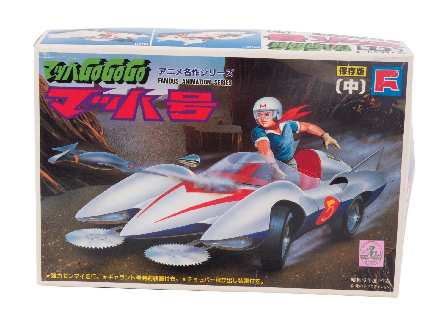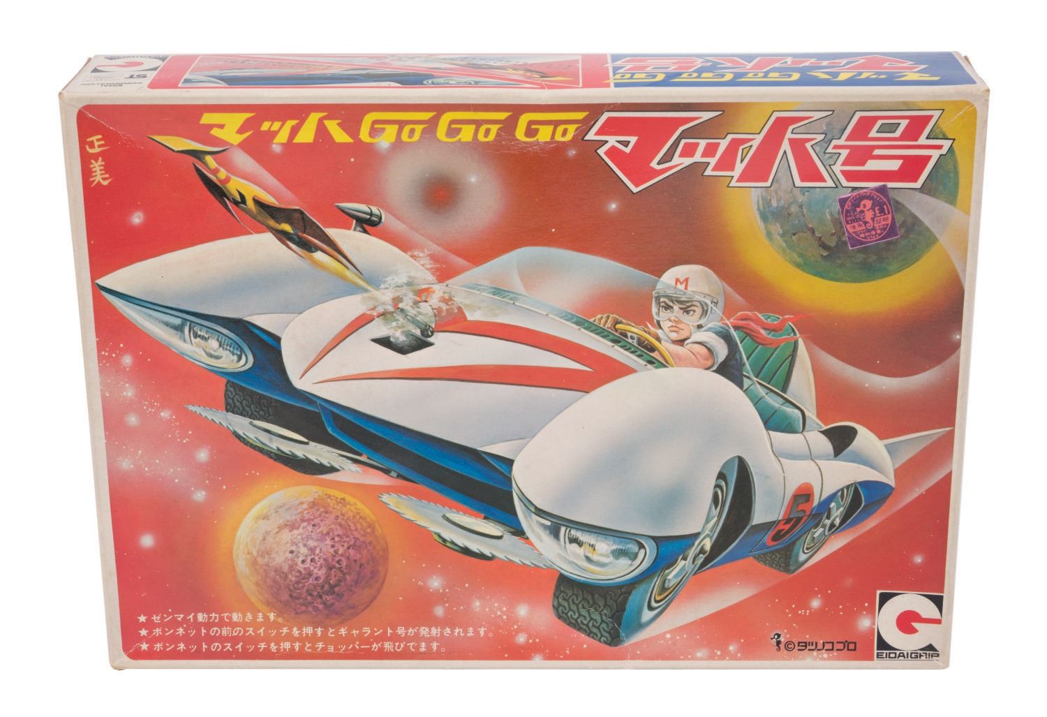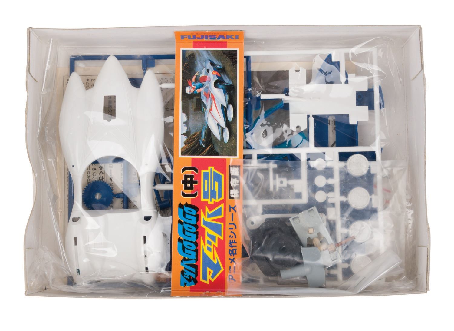 (Fujisaki/Eidai/Imai, 1970s-84) A collection of (3) vintage Speed Racer vehicle model kits. The collection includes both Eidai Grip and Fujisaki Mach V kits and a rare Speed Racer motorcycle kit. All vintage model kits are in fine condition, complete with working mechanized parts, and come with original very-good condition boxes.