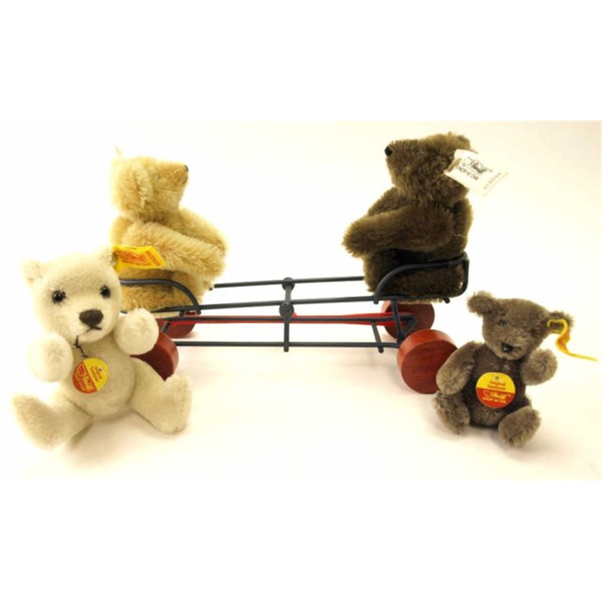 Collection of 3 Steiffs including 2 mini bear 3 1/2" and 5" tall, and a 1988 Steiff WigWag SeeSaw with the bears, 9" long.
