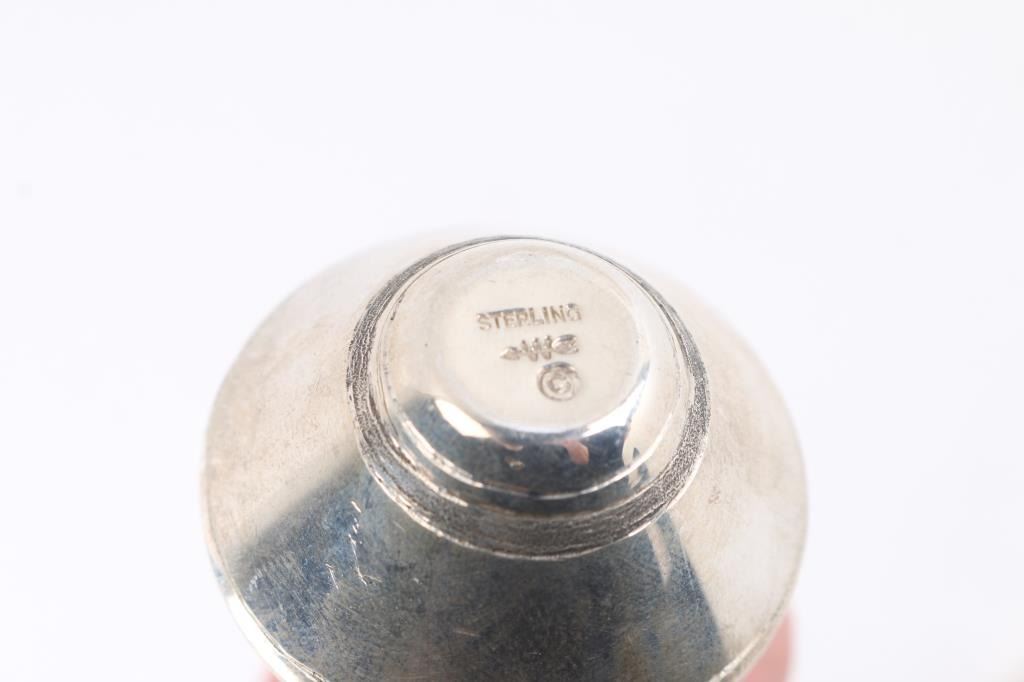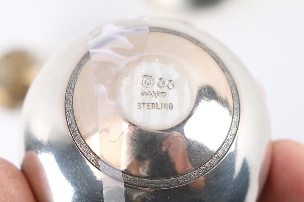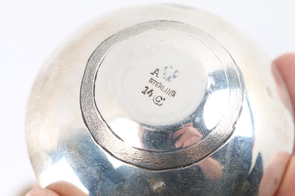 (1) Two-toned seed pot, sterling and gold, maker marked A with deer paw print, measures 3" x 1 1/2".