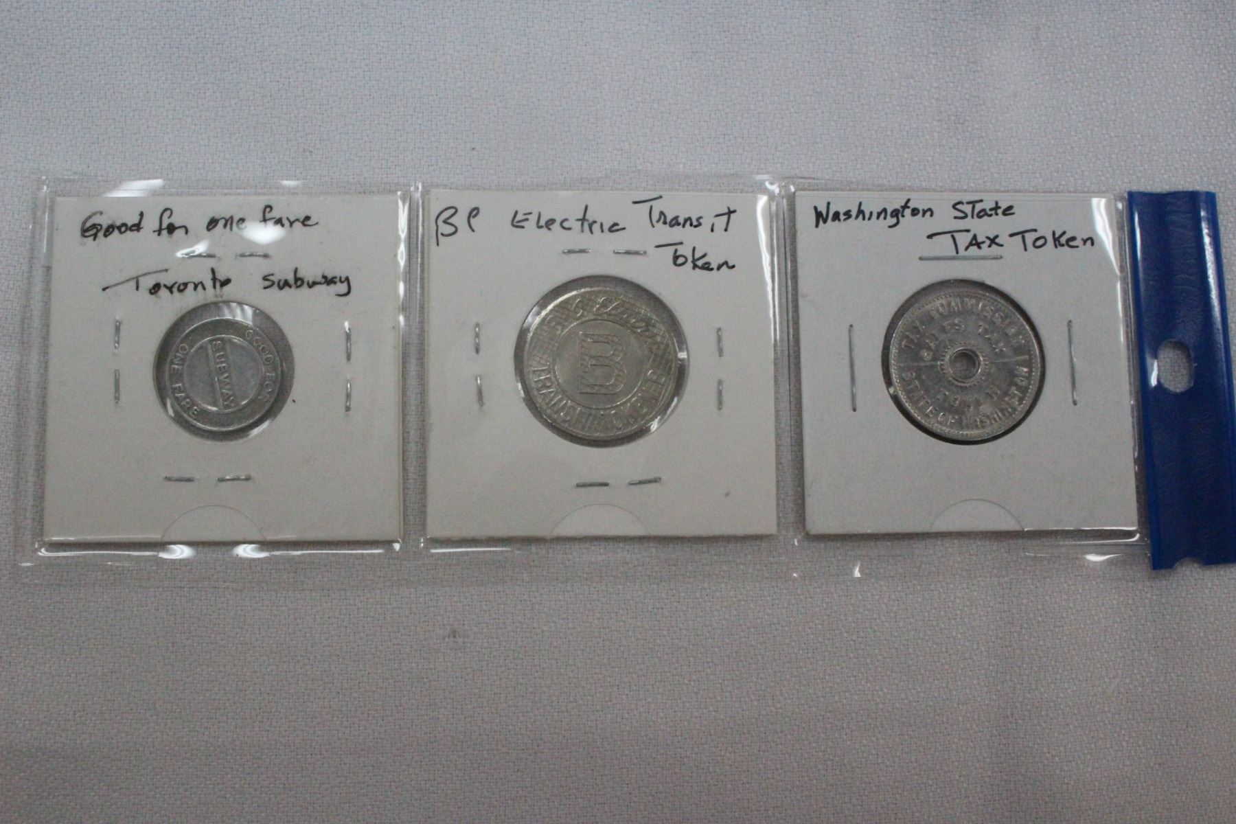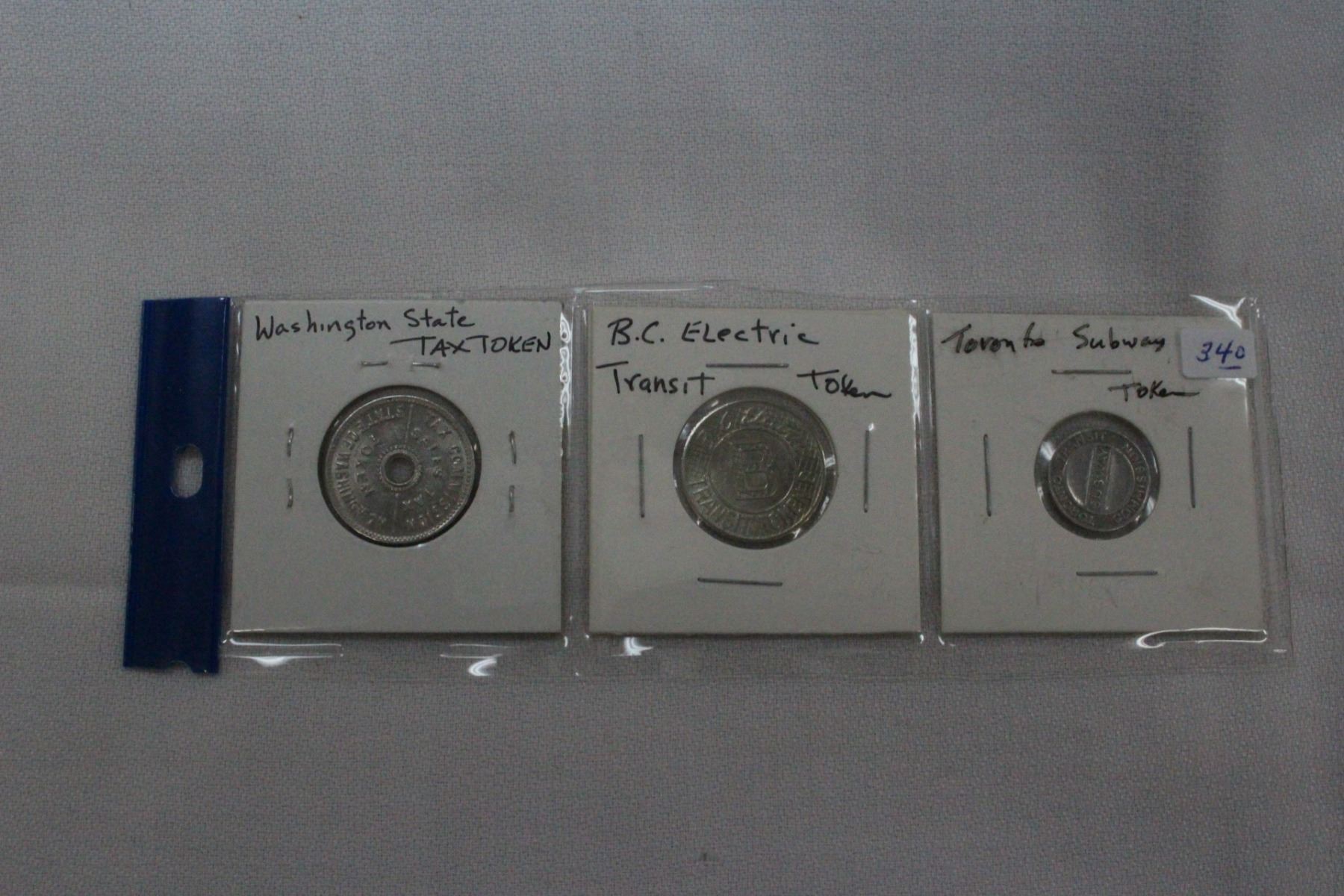 Washington State Tax Token, B.C. Electric Transit Token & Toronto Subway Token