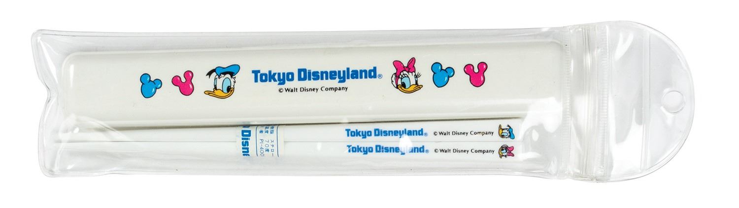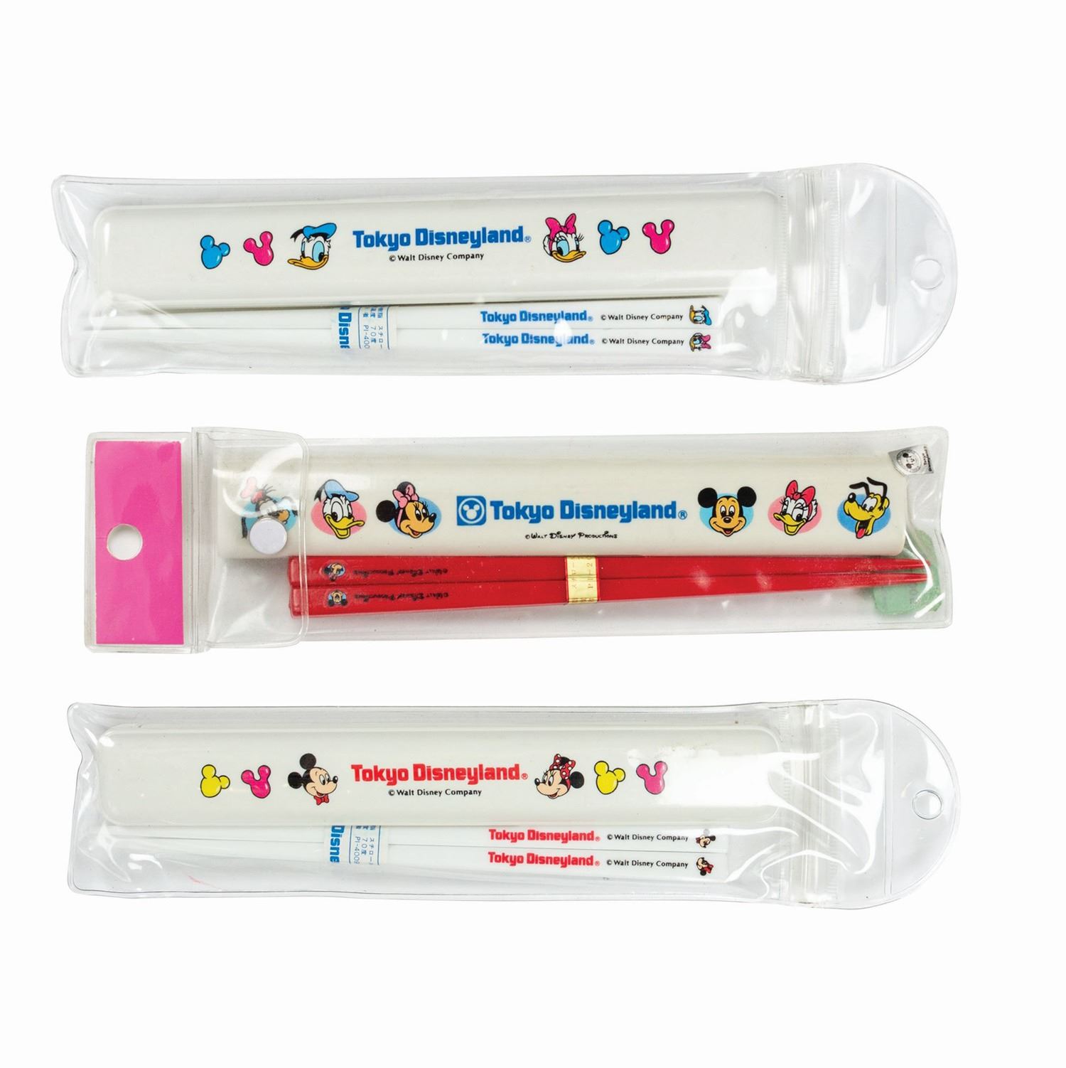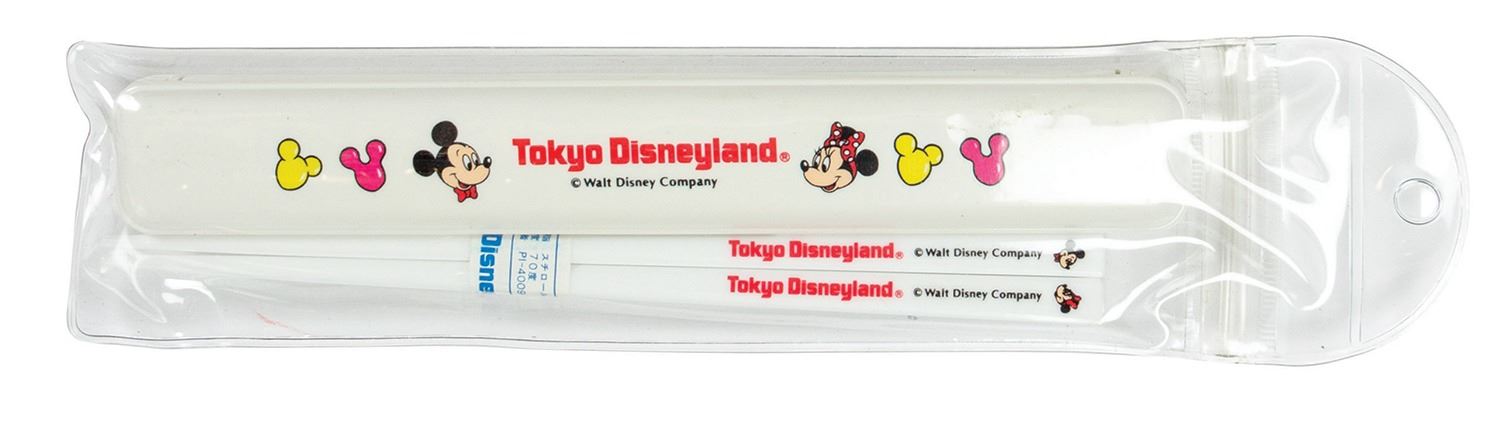 (Tokyo Disneyland, c.1980s) A collection of (3) sets of chopsticks from Tokyo Disneyland. Each set comes with a case for the chopsticks which features popular Disney characters such as Mickey, Minnie, Donald, Daisy, Goofy, and Pluto in varying combinations. The chopsticks measure approximately 7" long and the cases measure approximately 7.5". All are in very good condition and are still in their original packaging.