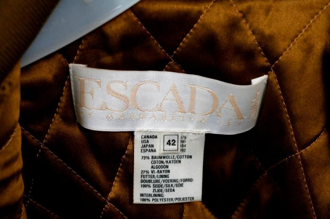 Including: GianFranco Ferre belted orange silk light coat, no size Escada by Margaretha Ley patterned velvet bomber jacket, size 42 Anne Klein khaki green suede jacket, size petite Items are sold as is. Please inquire about condition if not otherwise stated.