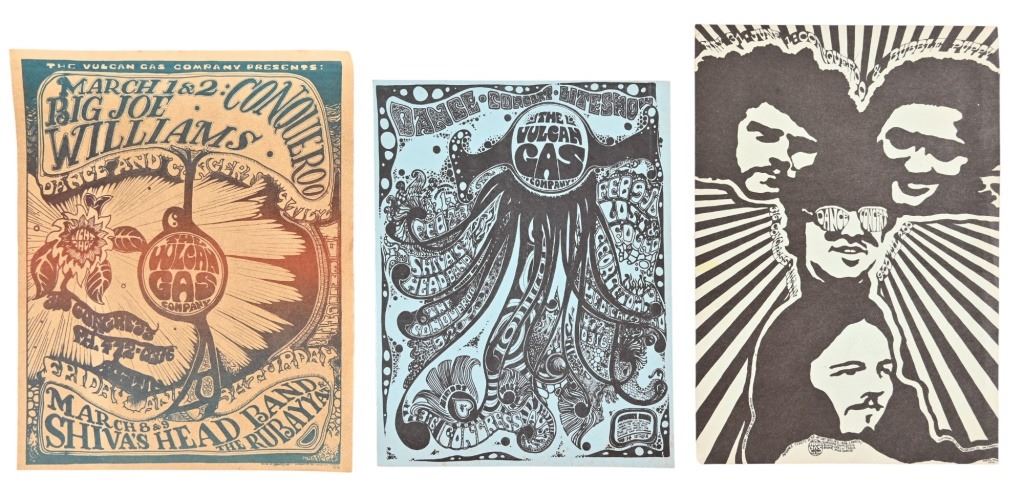 Conqueroo & Bubble Puppy, artwork by Jim Franklin and Gilbert Shelton, May 31-June 1, 1968. Conqueroo & Big Joe Williams, March 1-2 1968 Poster art by Robert Rush. Dane, Concert, LiteShow handbill, afrtist unknown. All handbills approximately 5" x 7"