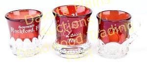 and toothpick holder in red stained glass, all showing excellent condition, tallest 2.5". Est. 25-75