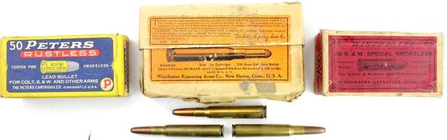 including Winchester .30 Govt Model 1906 with 3 rounds, empty Winchester .38 S&W Special and empty Peters .38 Colt N.P. Est. 25-75