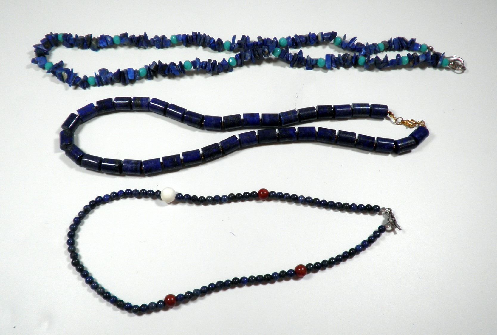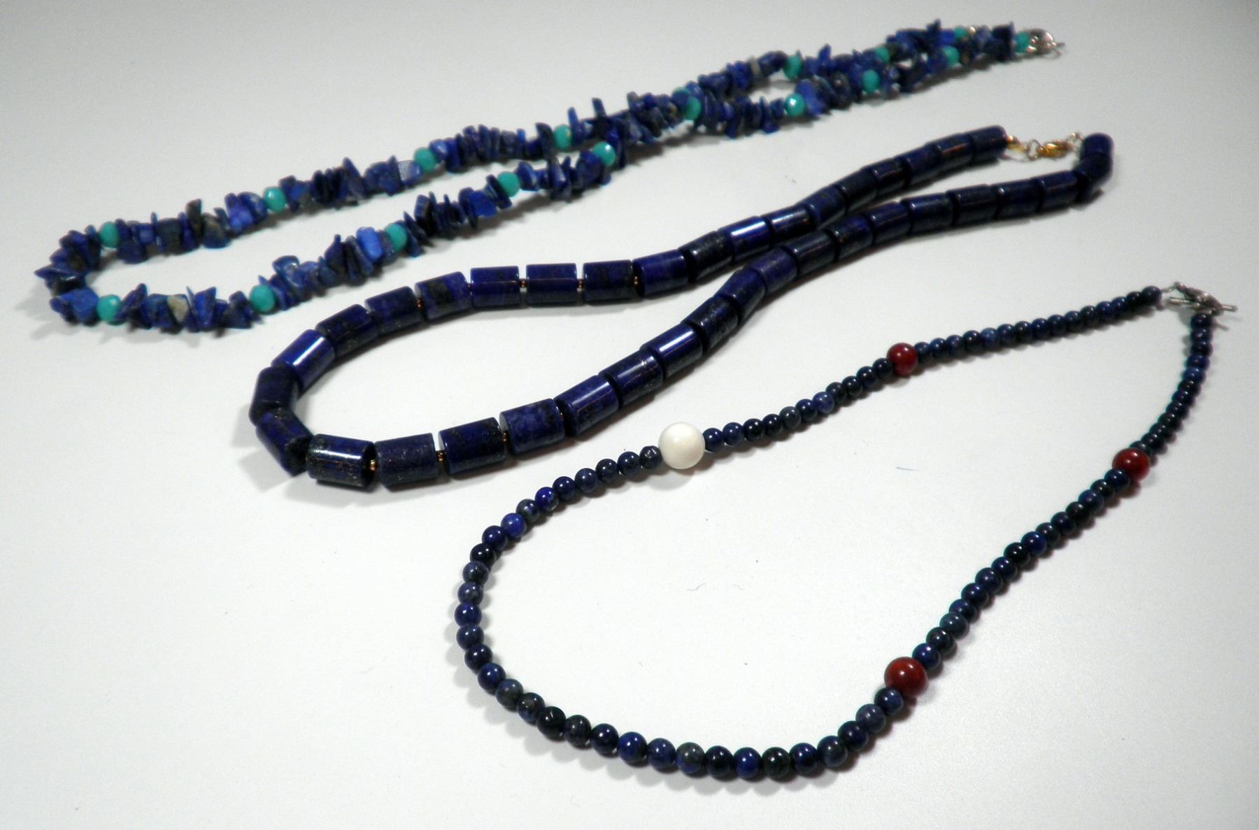 Collection of 3 lapis necklaces, length of necklaces: 37-54 cm.