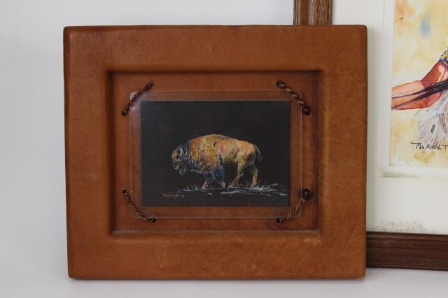 includes an original acrylic on board "Full Blood California Indian Woman" by Charles Lamona, watercolor "Lone Bison" by SD artist Cathy Sigle and watercolor "Walking the Fallen Cottonwood" by SD artist Marion Toillion. Largest 11 1/2" X 171/2". Est. 300-600