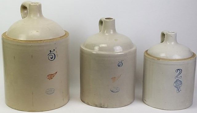 white glazed includes Buckeye 2 gallon and Red Wing 3 and 5 gallon. All show good condition, NO cracks or repairs. Est. 200-400