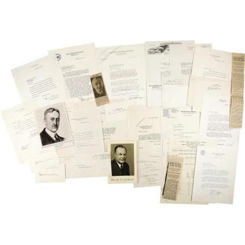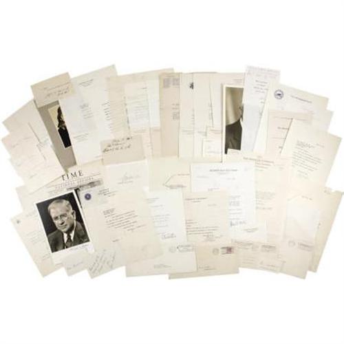 <B>Large Autograph Collection Featuring 30 Individuals Associated With Franklin Roosevelt's Presidency,</B></I> various formats, mostly autograph cards and Typed Letters Signed. Personalities included are: Attorney General <B>Frank Murphy,</B></I> Secretary of Labor <B>Frances T. Perkins,</B></I> Statesman <B>Bernard Baruch,</B></I> Vice-President <B>John Garner,</B></I> Secretary of State <B>Cordell Hull,</B></I> Secretary of Commerce <B>Jesse Jones,</B></I> Postmaster General <B>James Farley,</B></I> Secretary of the Treasury <B>Henry Morgenthau, Jr.</B></I> Secretary of the interior <B>Harold Ickes,</B></I> Attorney General <B>Robert Jackson,</B></I> F.B.I. Director <B>J. Edgar Hoover,</B></I> Secretary of the Navy <B>Charles Edwin,</B></I> Secretary of Commerce <B>Daniel Roper,</B></I> Secretary of War <B>Henry Stimson,</B></I> Secretary of Agriculture <B>Claude Wickard,</B></I> Secretary of War <B>George H. Dern,</B></I> Secretary of State <B>James Byrnes,</B></I> Secretary of Commerce <B>Harry Hopkins,.</B></I> <BR>All items very good to very fine condition. <I>From the collection of Henry E. Luhrs.</B></I><BR><BR><b>Shipping:</b> Miscellaneous Collectibles, Smal (<a target="_blank" href="http://www.heritageauctions.com/common/shipping.php">view shipping information</a>)