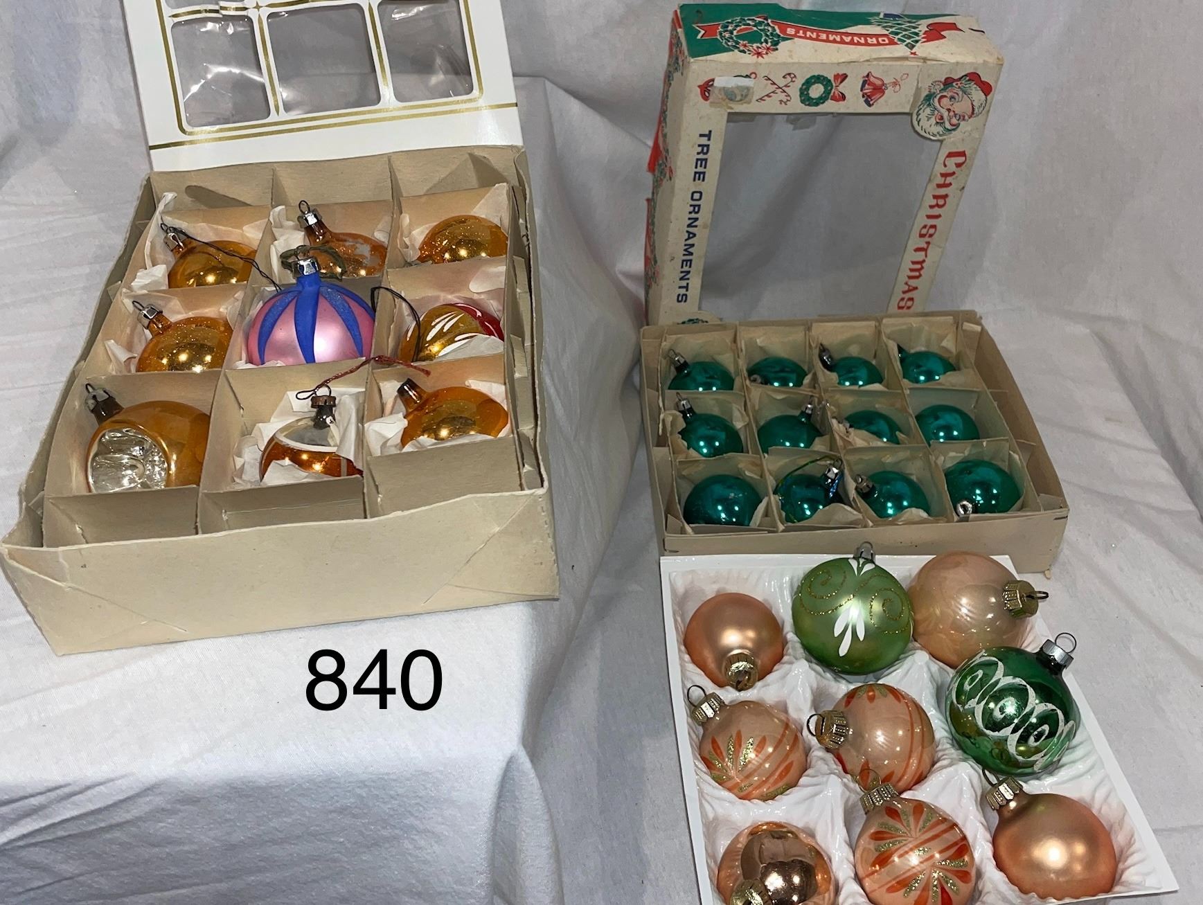 Collection of 30 assorted, glass, Christmas tree ornaments. Some are hand painted