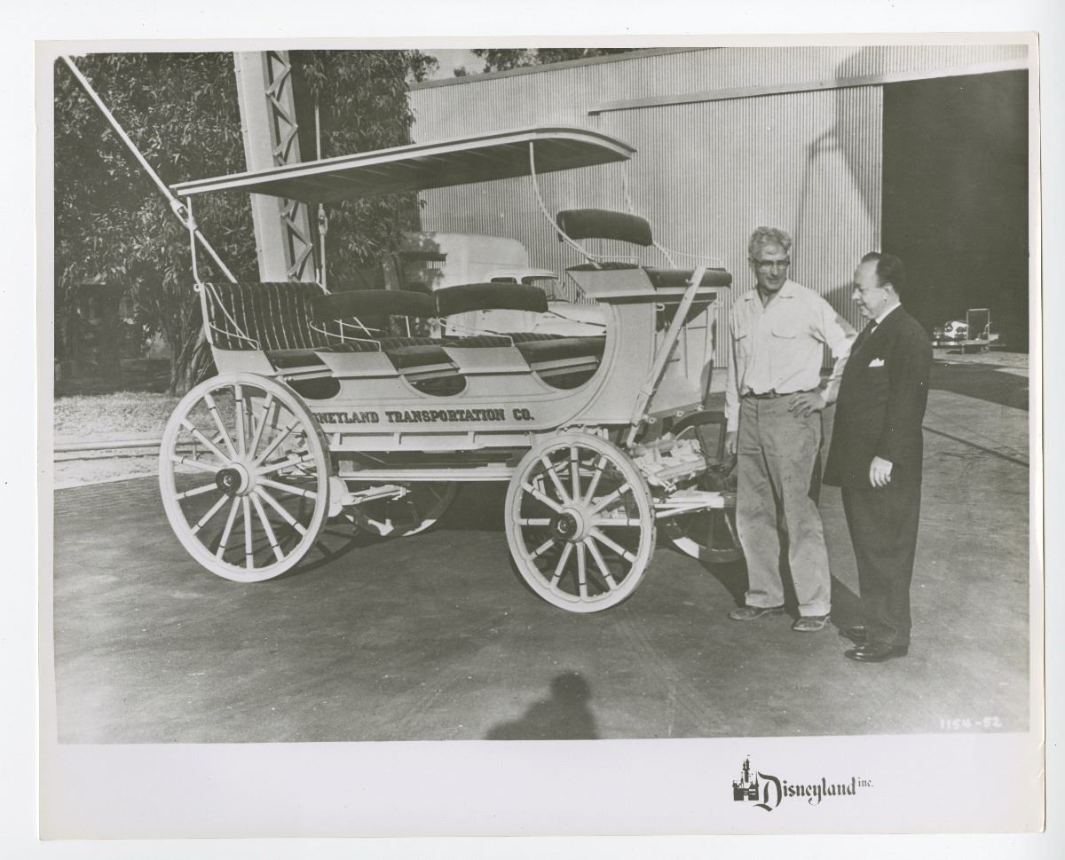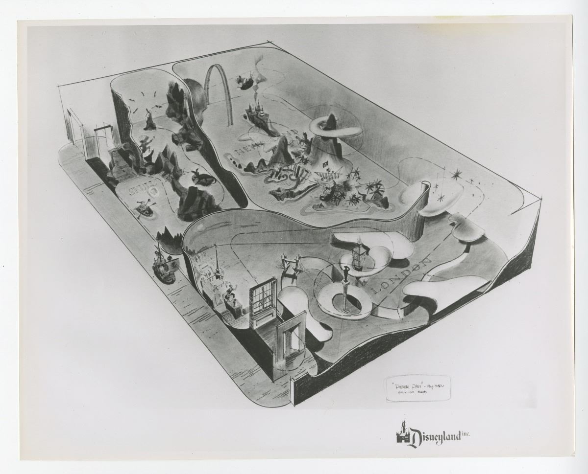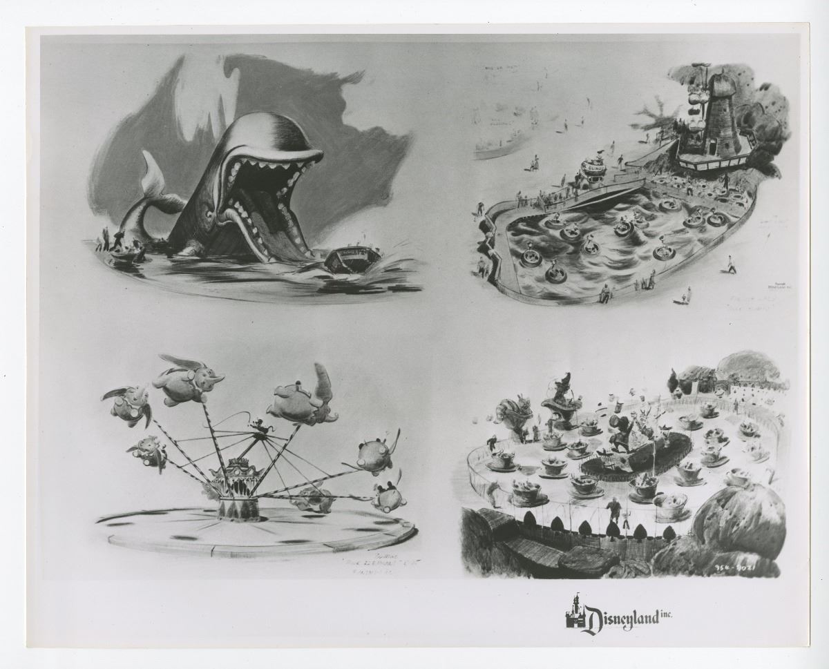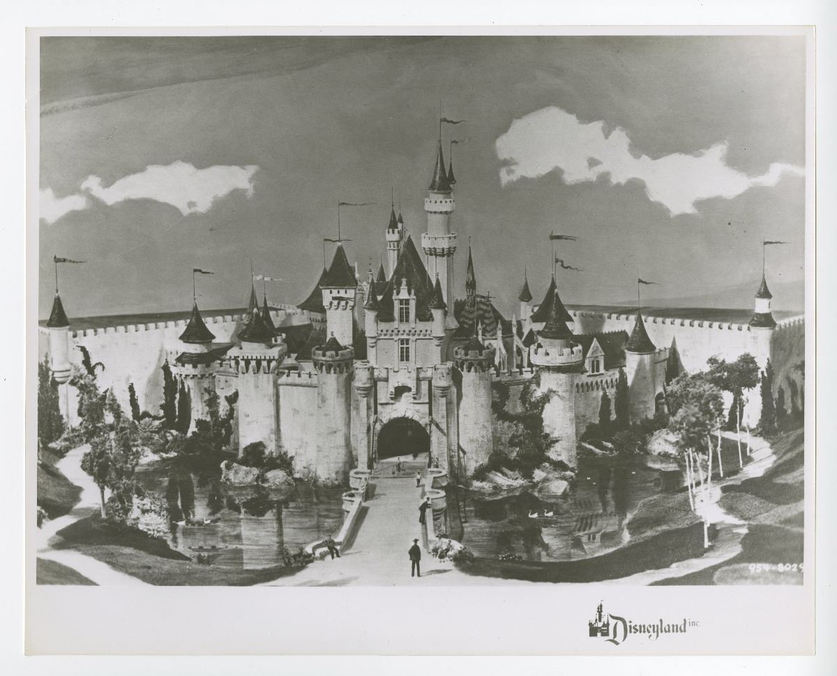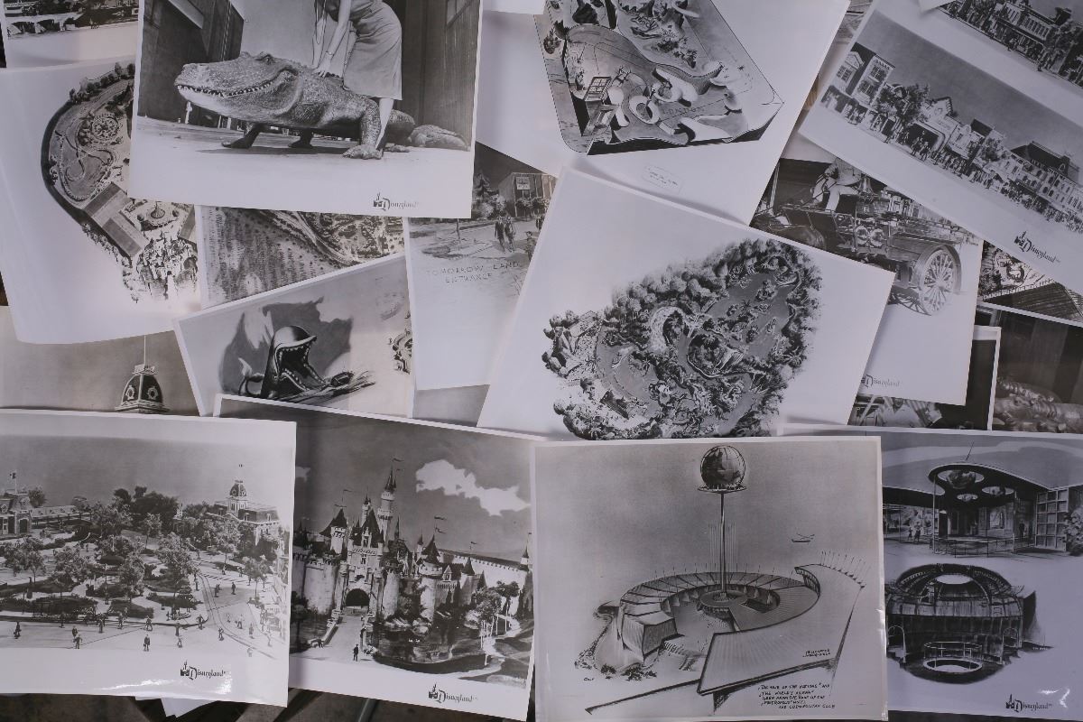 (Disneyland, 1955) Incredible collection of (34) pre-opening publicity photos of Disneyland. Features early conceptual artwork of the park, photos of early models, and more. Each of the black and white photos feature a Disneyland logo at the bottom. Each photo measures 14"x11". Set in very good condition with some edge wear and edge staining from age.