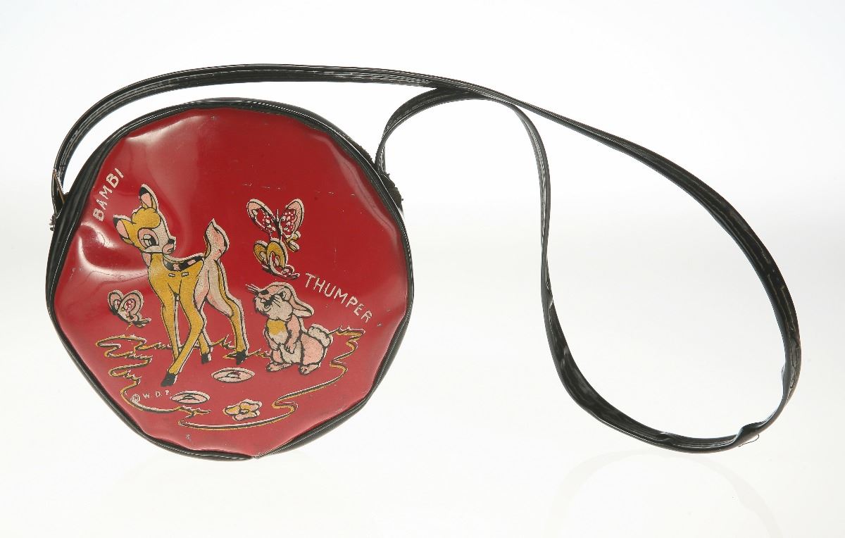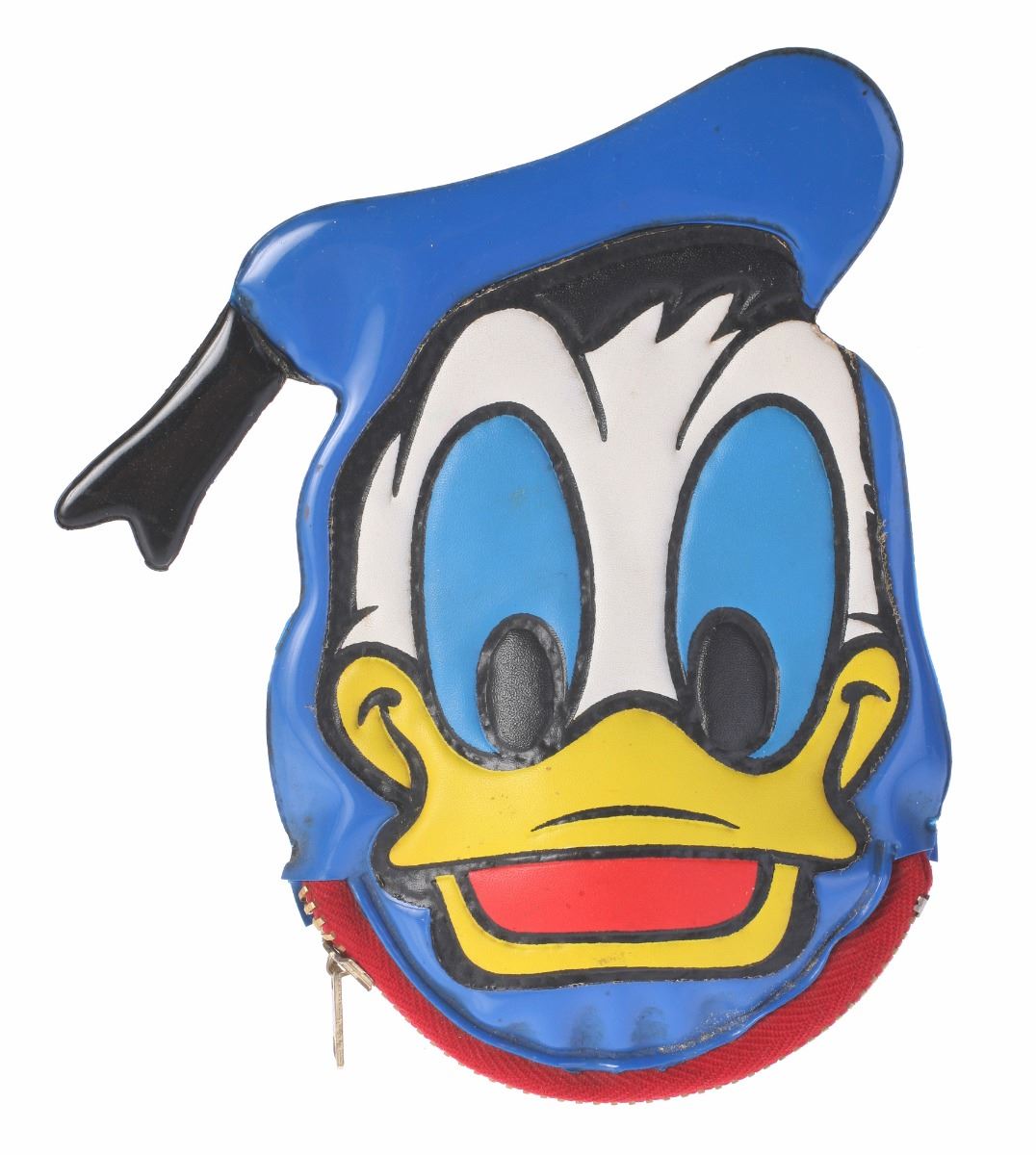 (Disneyland, 1960s-70s) Collection of (4) Disneyland souvenir purses. Includes (1) Donald Duck-shaped squeaker coin purse, (1) Mickey Mouse-shaped squeaker coin purse, (1) black purse with Minnie Mouse figure, and (1) Bambi and Thumper zipper purse. Set is in good condition with minor wear, with non functioning squeakers.