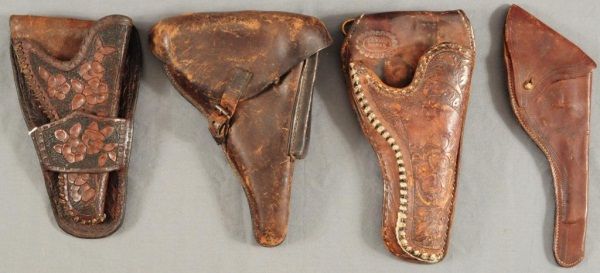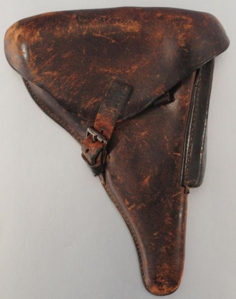 Leather Luger Holster, Marked R. Ehrhardt Poessneck WaA23 1939 with Proof Mark.. Leather Holster, Some Tooling Around Edges. Measures 12" long. Leather Holster Floral Motif. Measures 9" long.