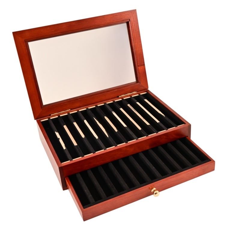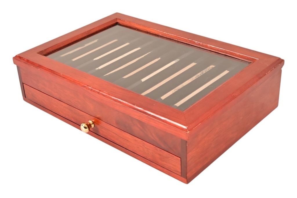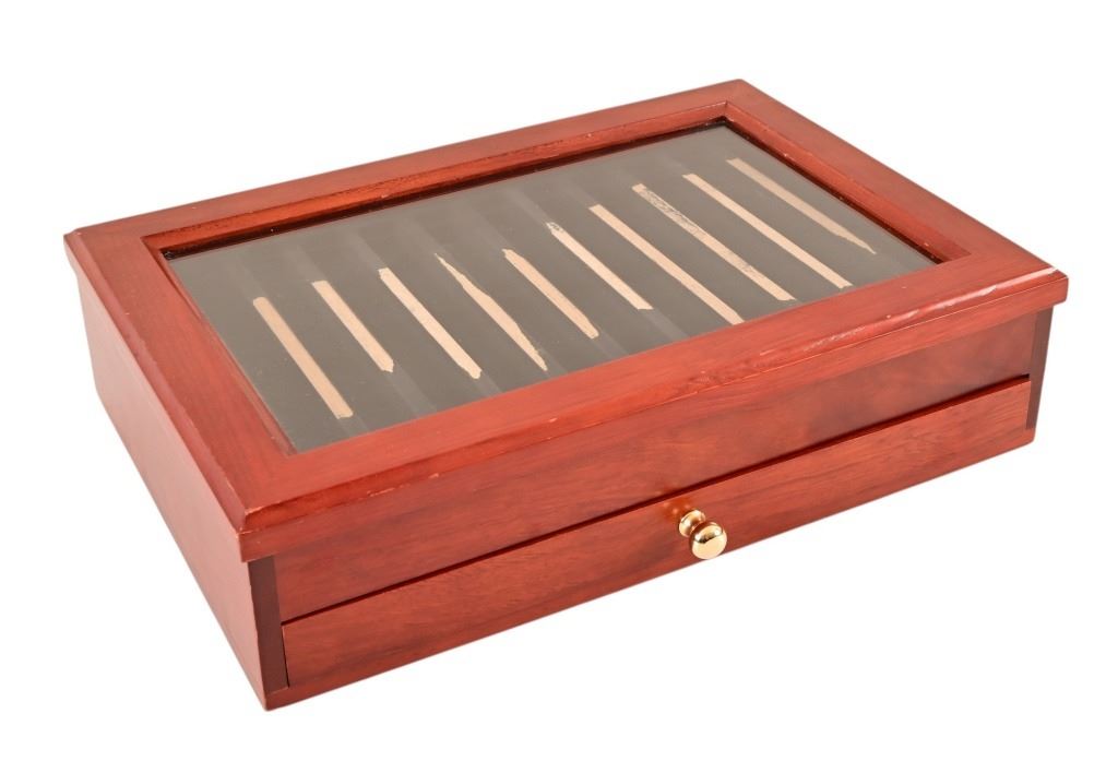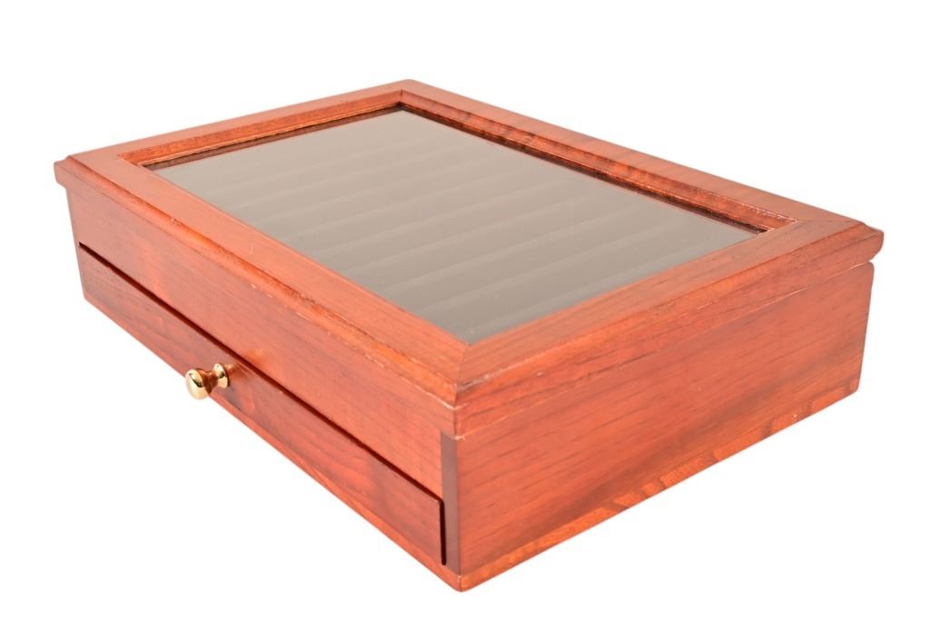 Damage to felt on one display case, easily correctable.
