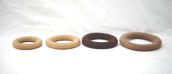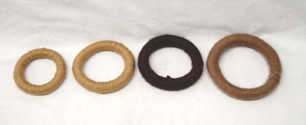 Collection of 4 Mata Ortiz Yarn Covered Pot Rings, 2.75'', 3'', 3.5'', and 4''