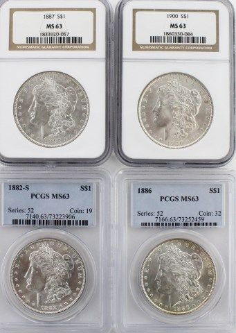 slabbed and graded MS 63, includes 1882 S, 1886, 1887 and 1900. Est. 125-200