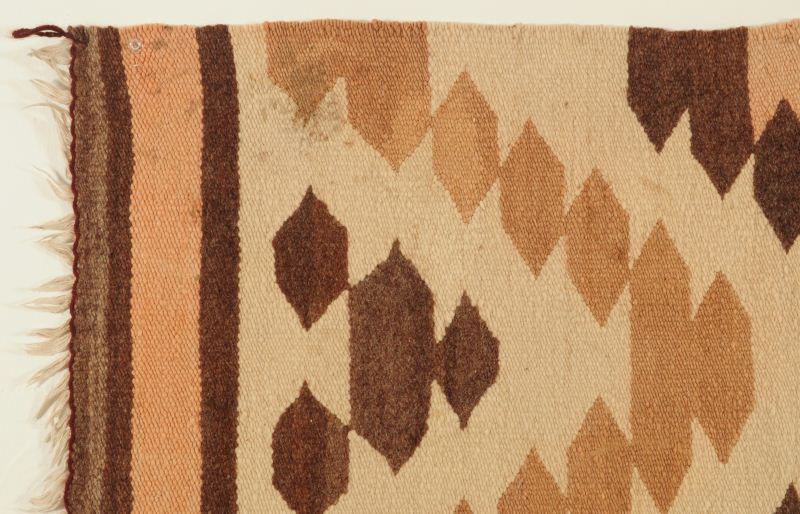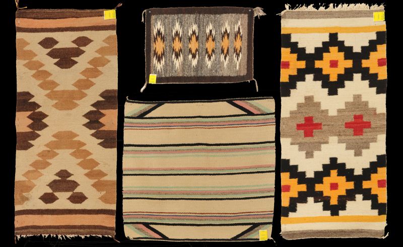 Includes: Natural Dye, Homespun (17-1/2" x 24-1/2"); Navajo Rug by Chee. Condition issues, holes present (40" x 19"). Navajo Rug (39" x 18"); Navajo Saddle Blanket (28" x 29").