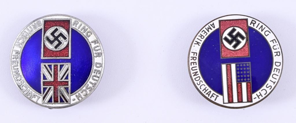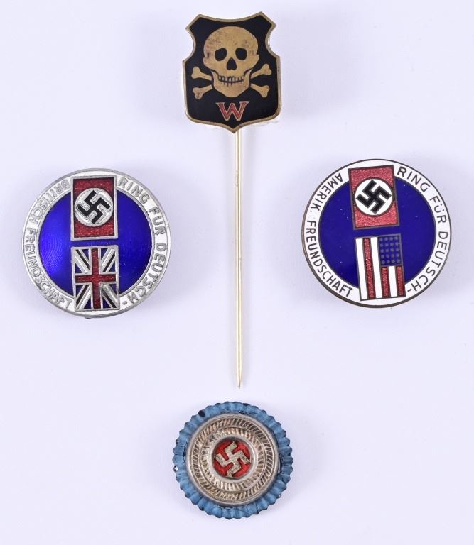 Wehrwolf Freikorps pin; German/British Friendship pin; Bavarian NSDAP pin c.1925.