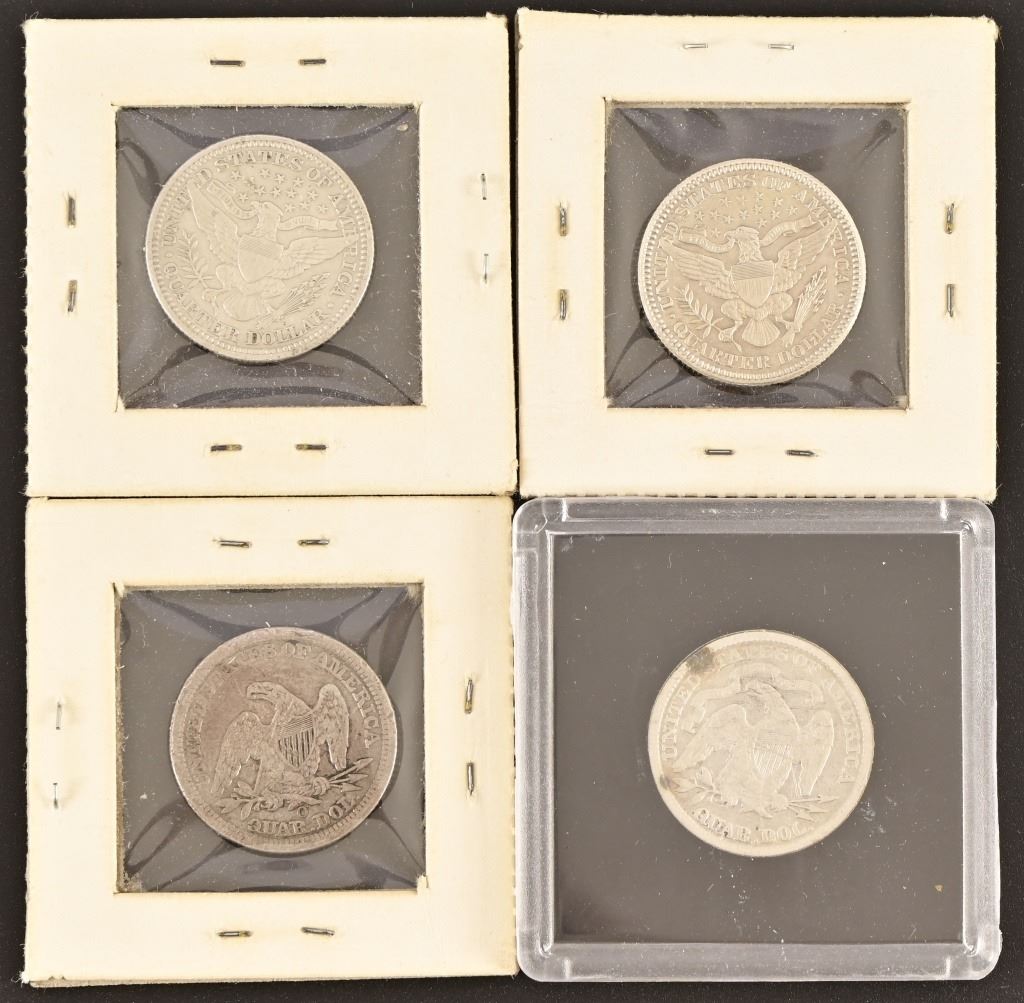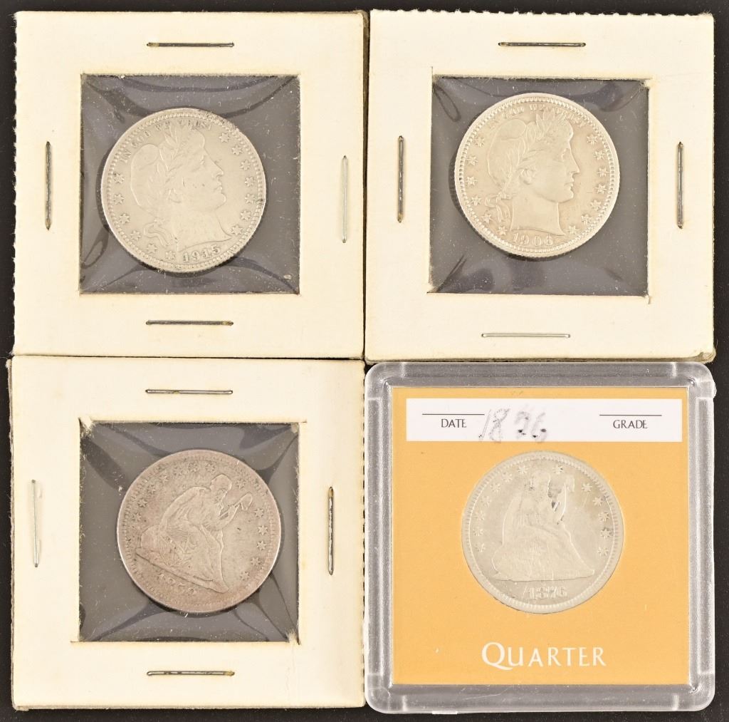 1858 & 1876 Seated Liberty Quarters ; 1906 and 1915 Barber Quarters