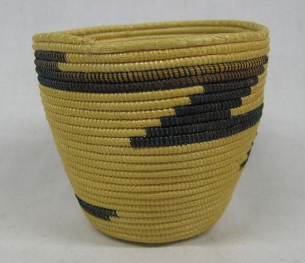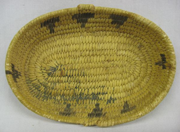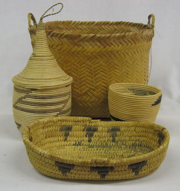 Collection of 4 Woven Baskets. Largest has handles and measures 7.5''H x 10.25''. Some discoloration in the bottom. Two finely woven multi-toned baskets, one with a pointed lid. Oval shaped basket has some discoloration on the bottom. A nice variety for you.