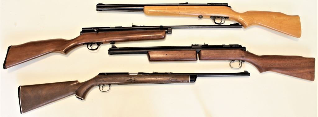 Collection of 4 includes 1) Daisy .22 VL caseless cartridge rifle very good condition