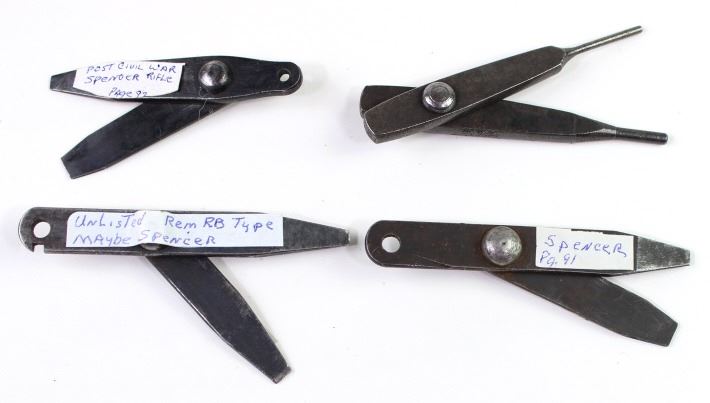 Collection of 4 original rifle combination tools includes 2) Spencers, US tumbler and one other.includes 2) Spencers, US tumbler and one other.