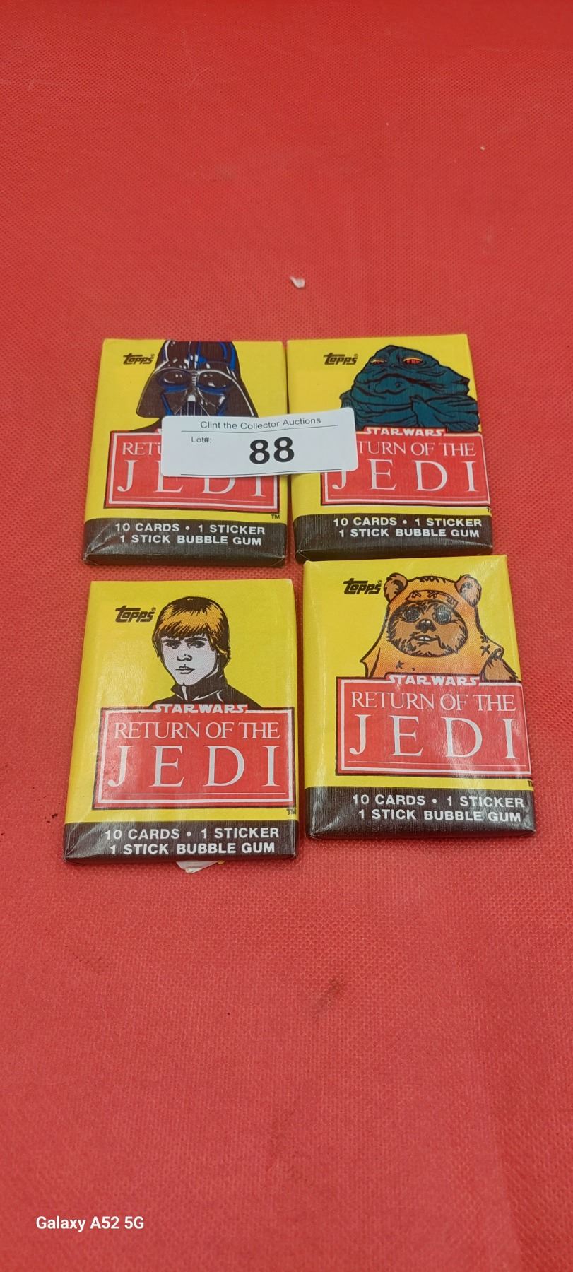 Collection of 4 unopened packs of 1983 Star Wars Return of the Jedi bubble gum trading cards