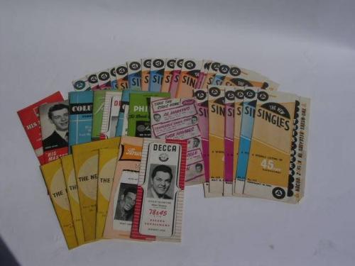 Collection of 40+ Vinyl Record Release Flyers 1954-67 most showing Top Twenty chart Hits inc number