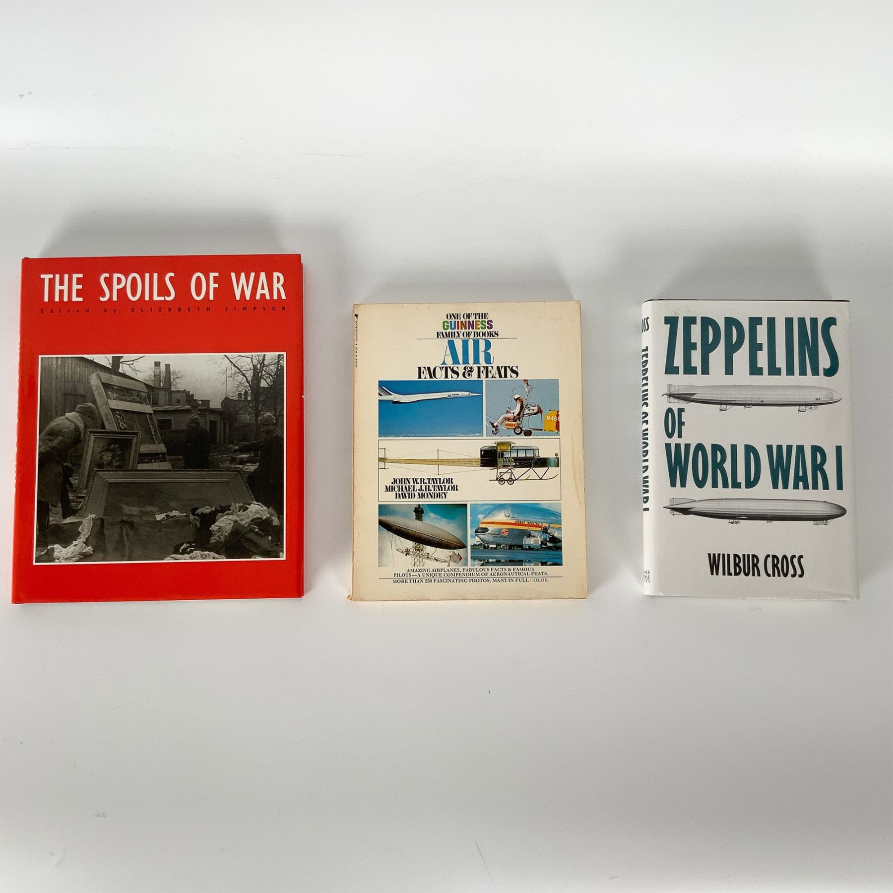 Collection of five books exploring key aspects of World War I and World War II, including military technology, historical accounts, and post-war consequences. Included are Zeppelins of World War I by Wilbur Cross, a detailed study of German airship warfare; Air Facts & Feats by Taylor, Taylor, and Monday, which examines aviation history and innovations; The Spoils of War by Simpson, an analysis of looted art and treasures during and after the wars; The German Century by Sturmer, a broad exploration of Germany's political and cultural history; and World War II Extra by Caren, a collection of newspaper-style reports on key events of the war. This set provides a compelling look at wartime history, aviation advancements, and post-war implications, making it a valuable addition to any military history collection.