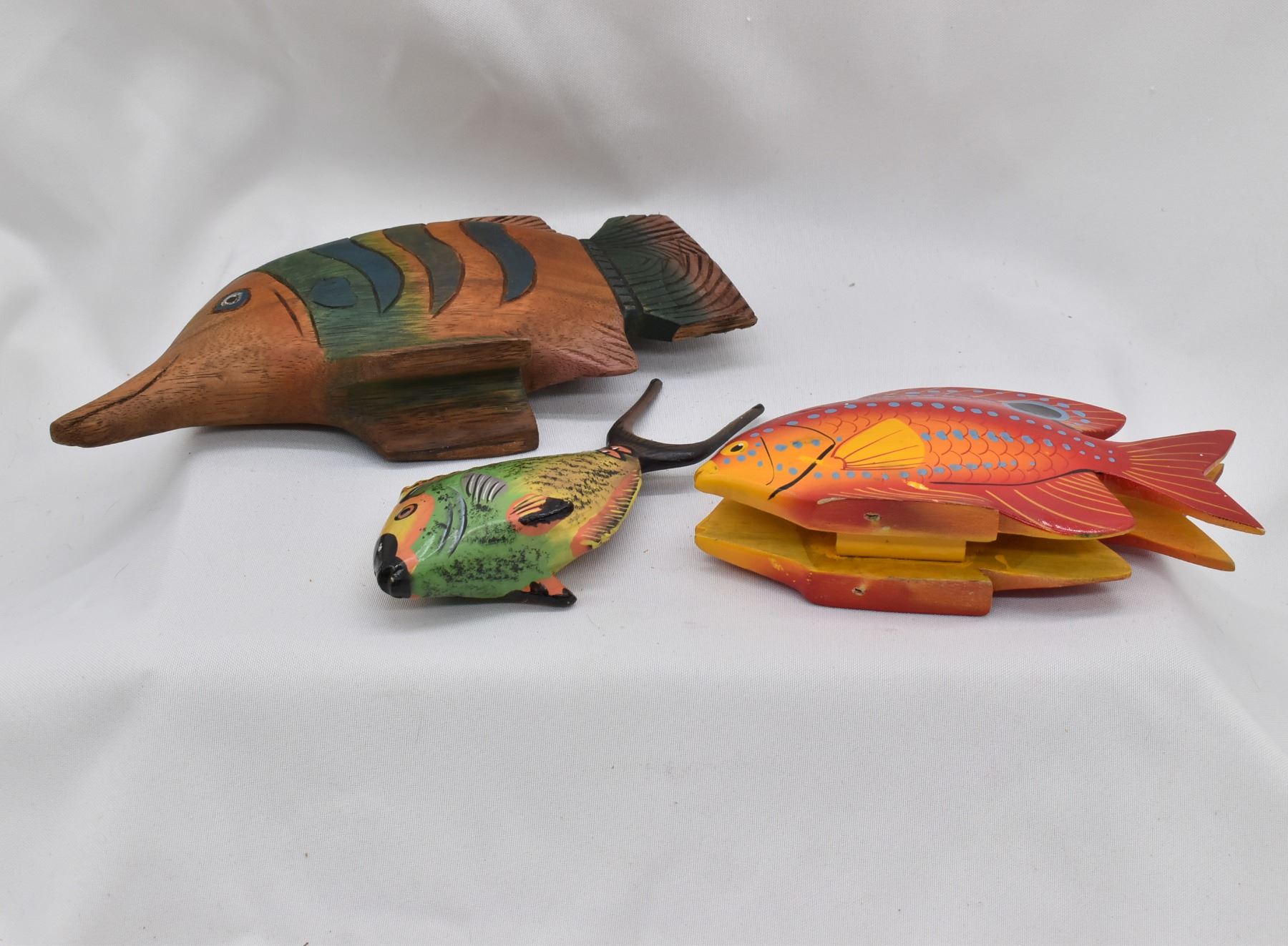 Collection of 5 Carved Wood Fish, hand painted, largest measures 8''L, lots of bright colors