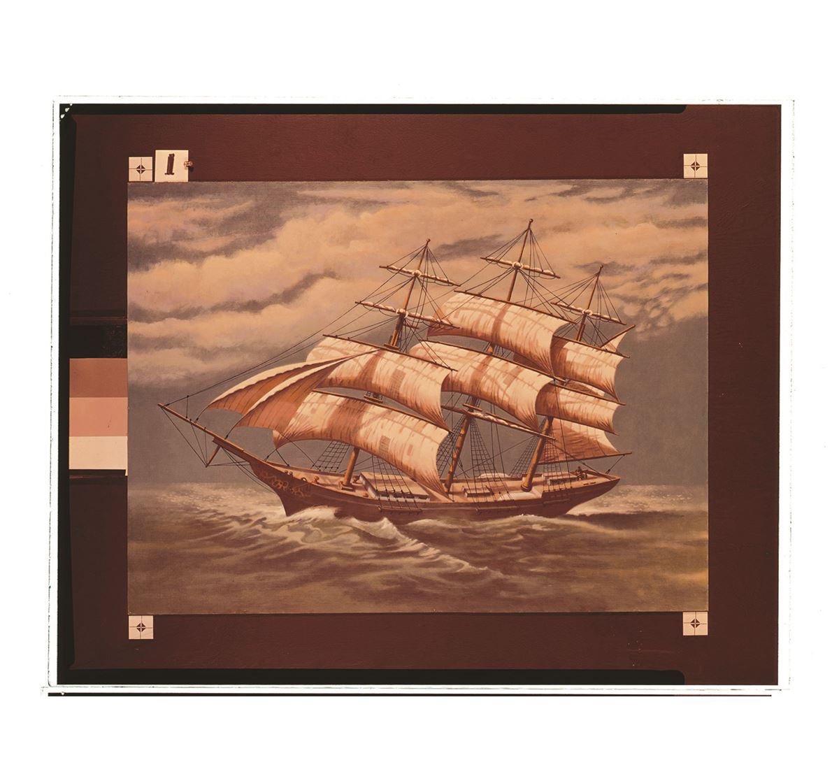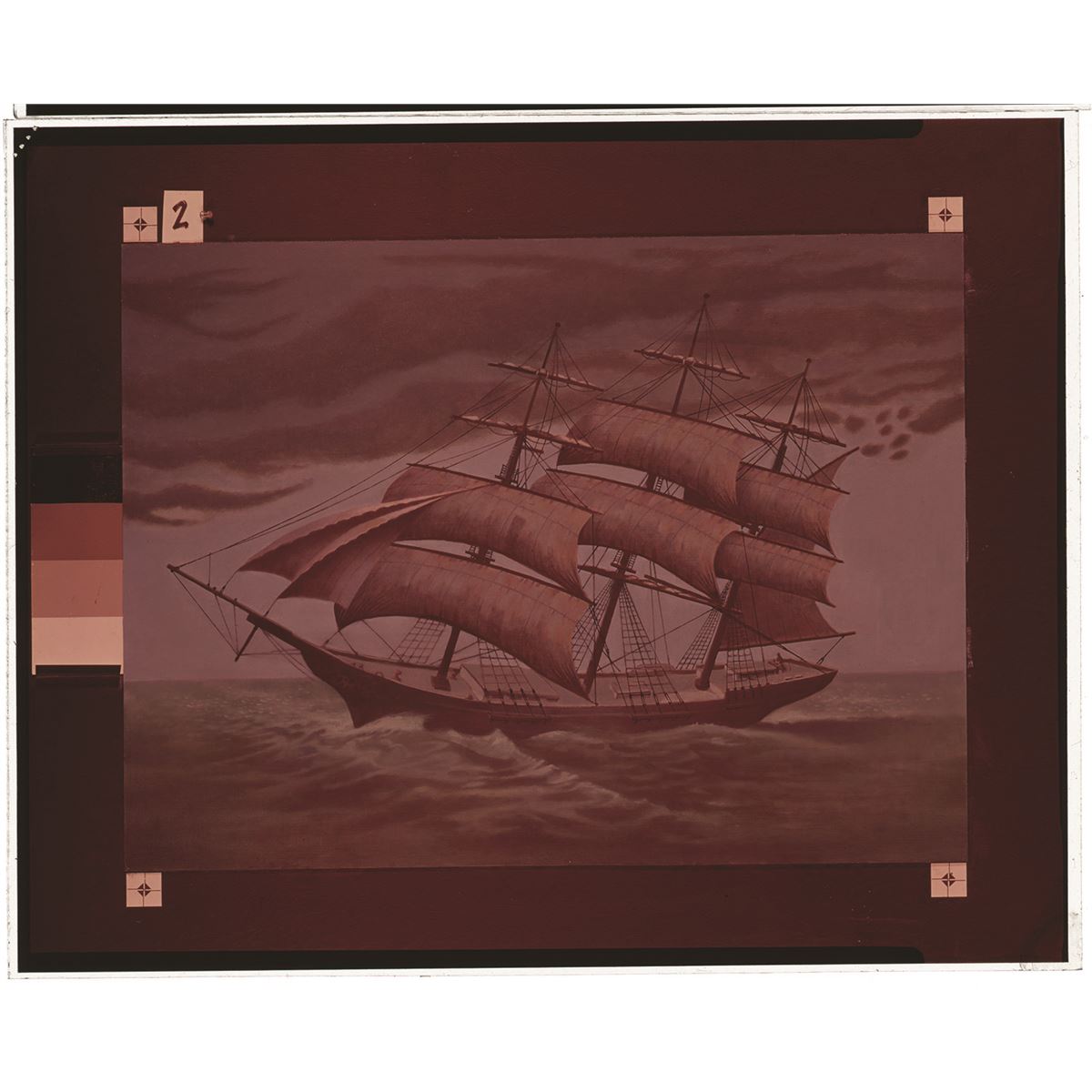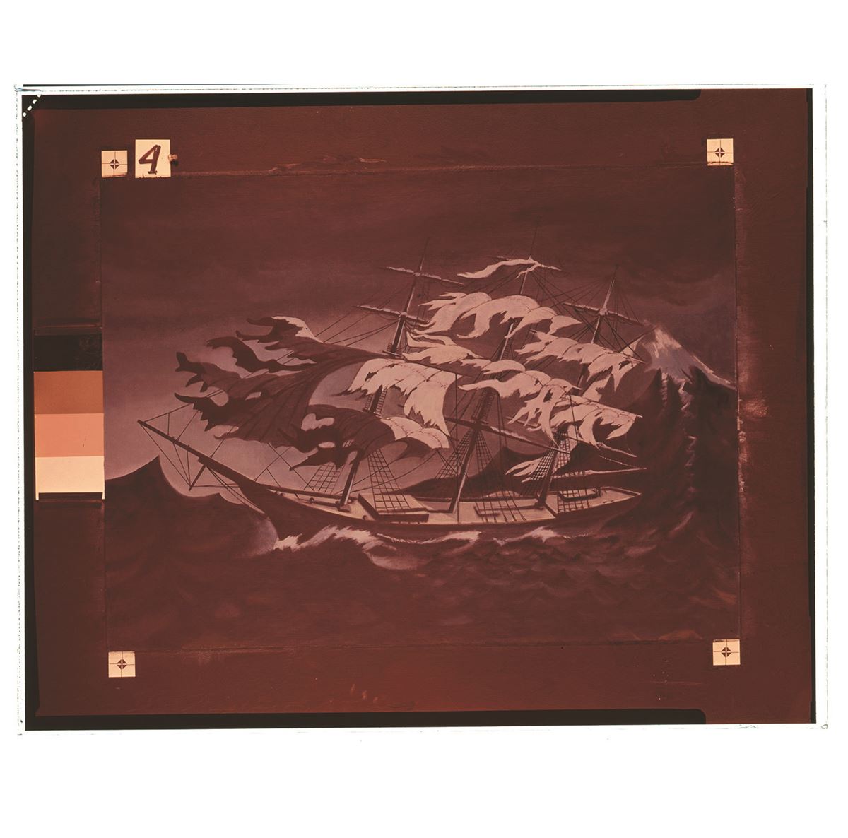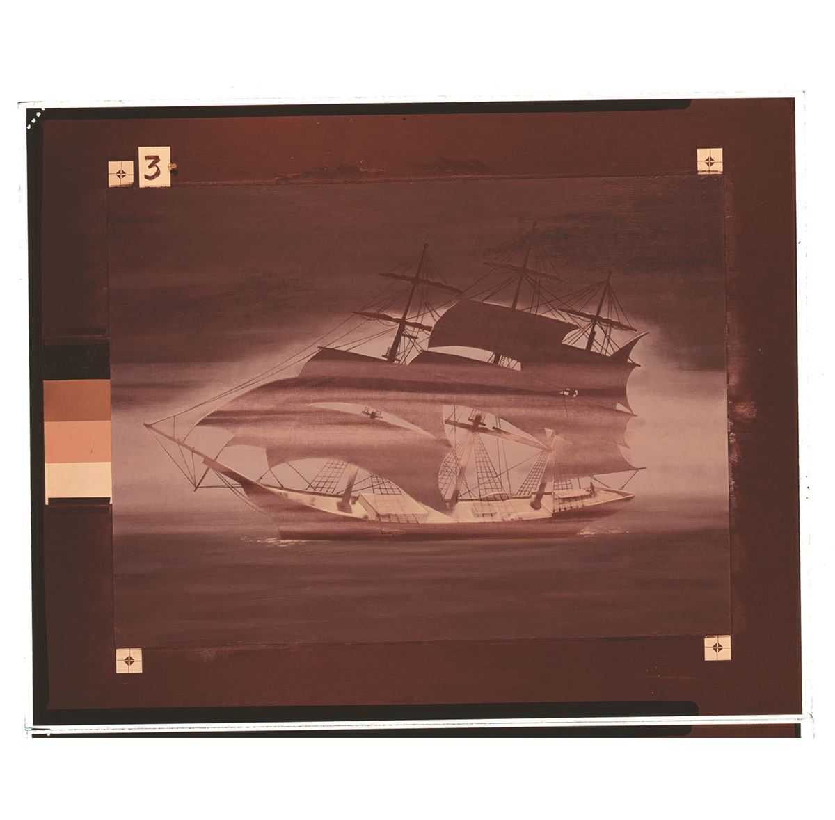 (Disneyland, 1969) Incredible set of (5) 4' x 5" glass slides featuring images of a schooner changing into a Ghost Ship. This particular image is still seen in the attraction today. Slides are in fine condition with minor scratches.