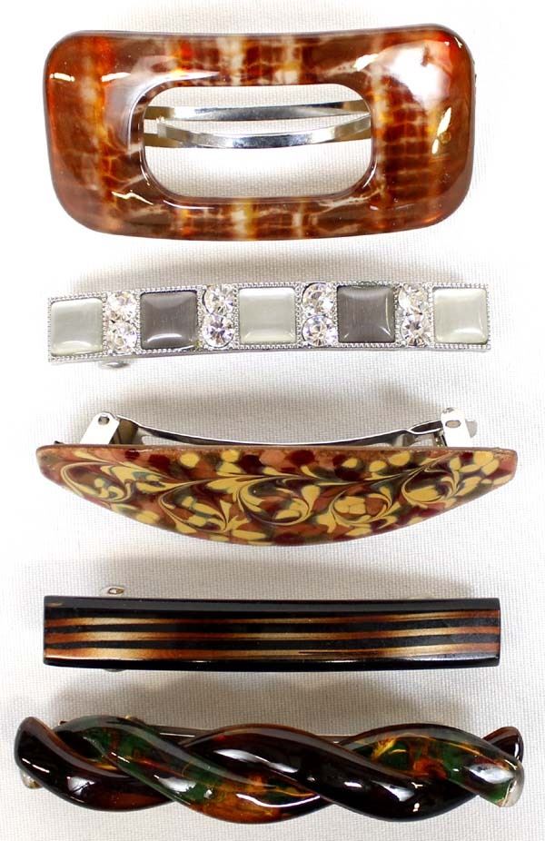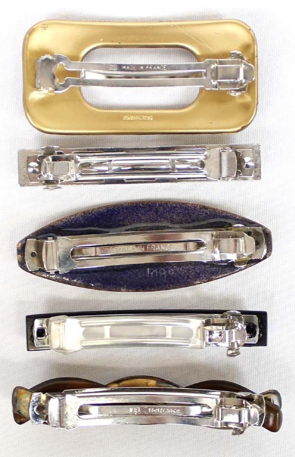 Collection of 5 Hair Clips, 4 Foreign 1 USA. Foreign include 2 French 1 Holland and 1 Scunci (Norwegan)