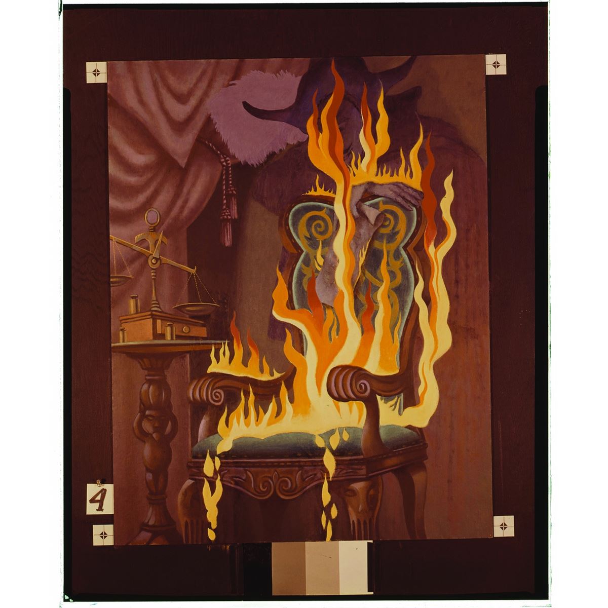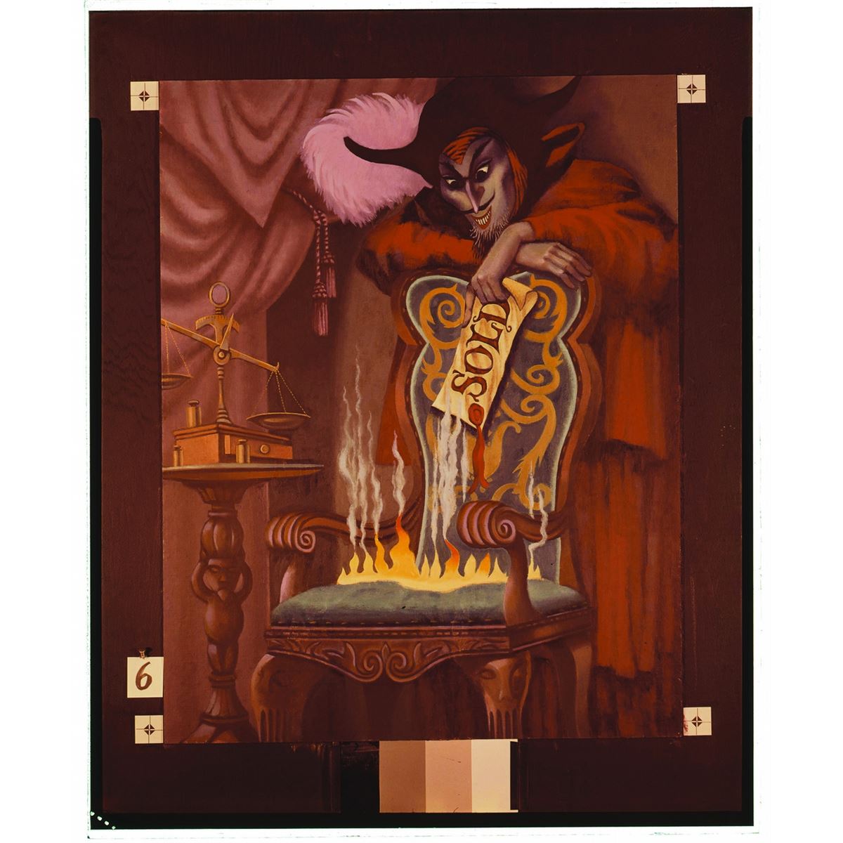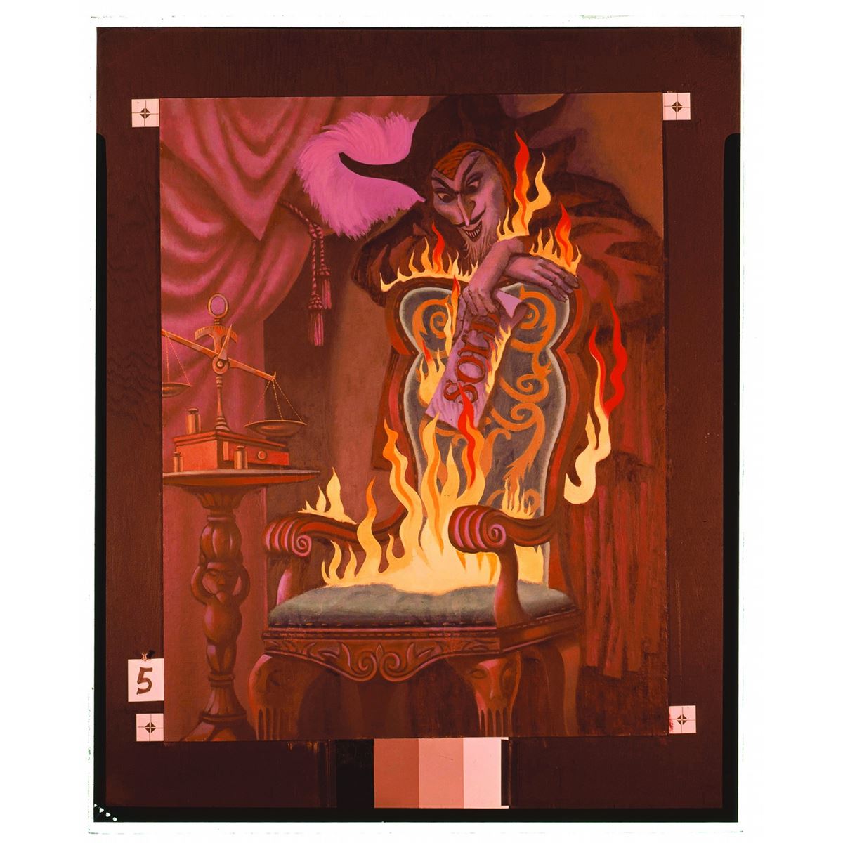 (Disneyland, 1969) Incredible set of (5) 4”x5” glass slides featuring images of an old man who sells his soul to Satan. This particular image did not make the final version of the attraction. Slides are in fine condition with minor scratches.