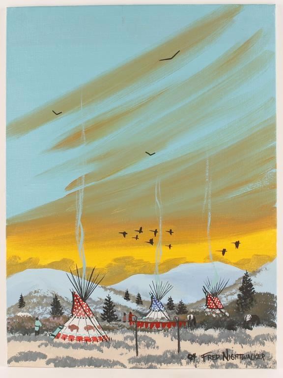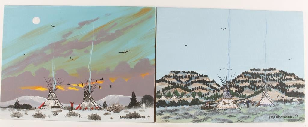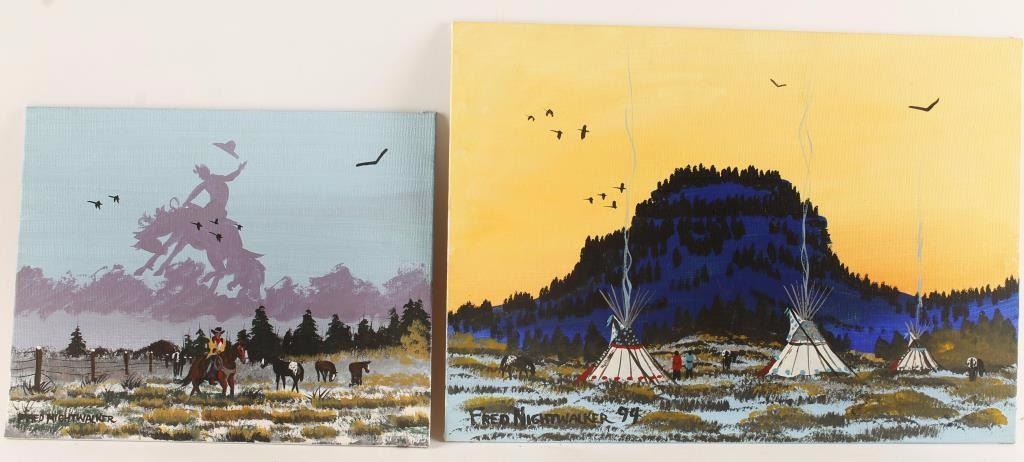 by local Oklahoma artist Fred Nightwalker. 8"x10" and 12"x16". Various indian scenes.