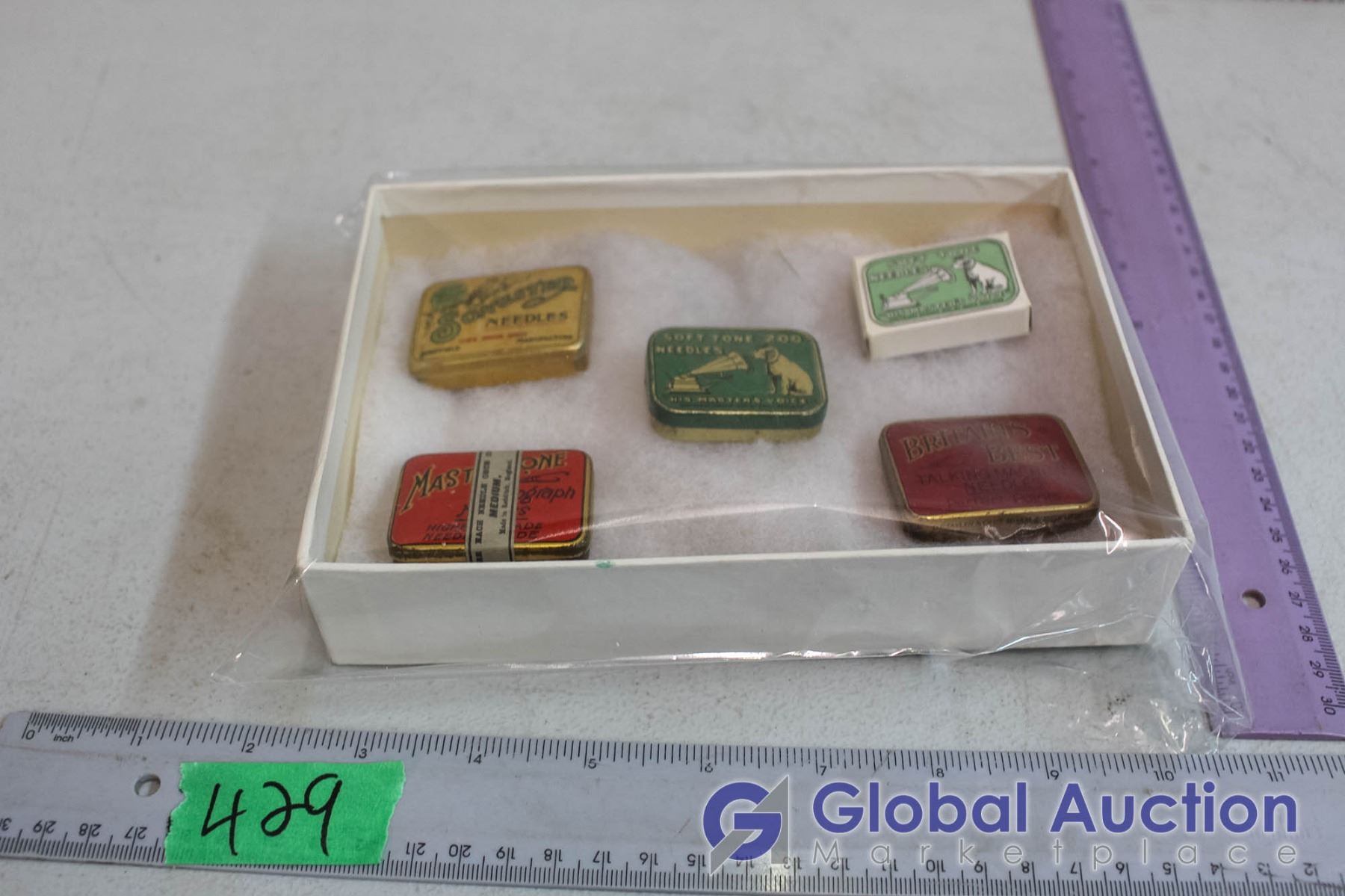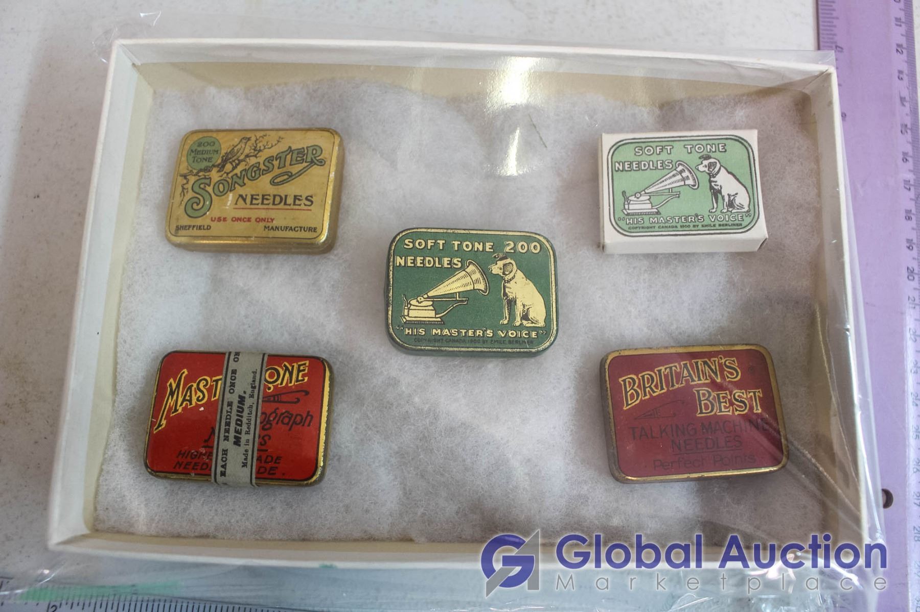 Collection of 5 Phonograph Needle Tins & Some with Contents