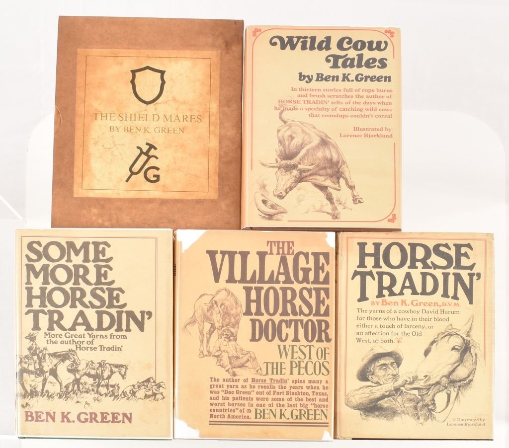"Wild Cow Tales" Signed 1969 first edition, fine condition. "Horse Tradin'" signed 1967 first edition. "The Village Horse Doctor" signed 1971 first edition. "Some More Horse Tradin'" signed 1972 stated first edition. "The Shield Mares" signed 1967 limited edition 1/750.