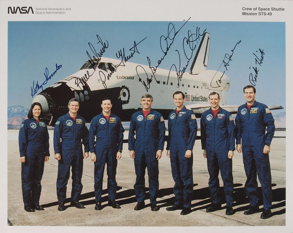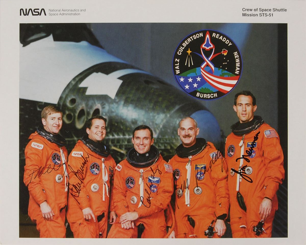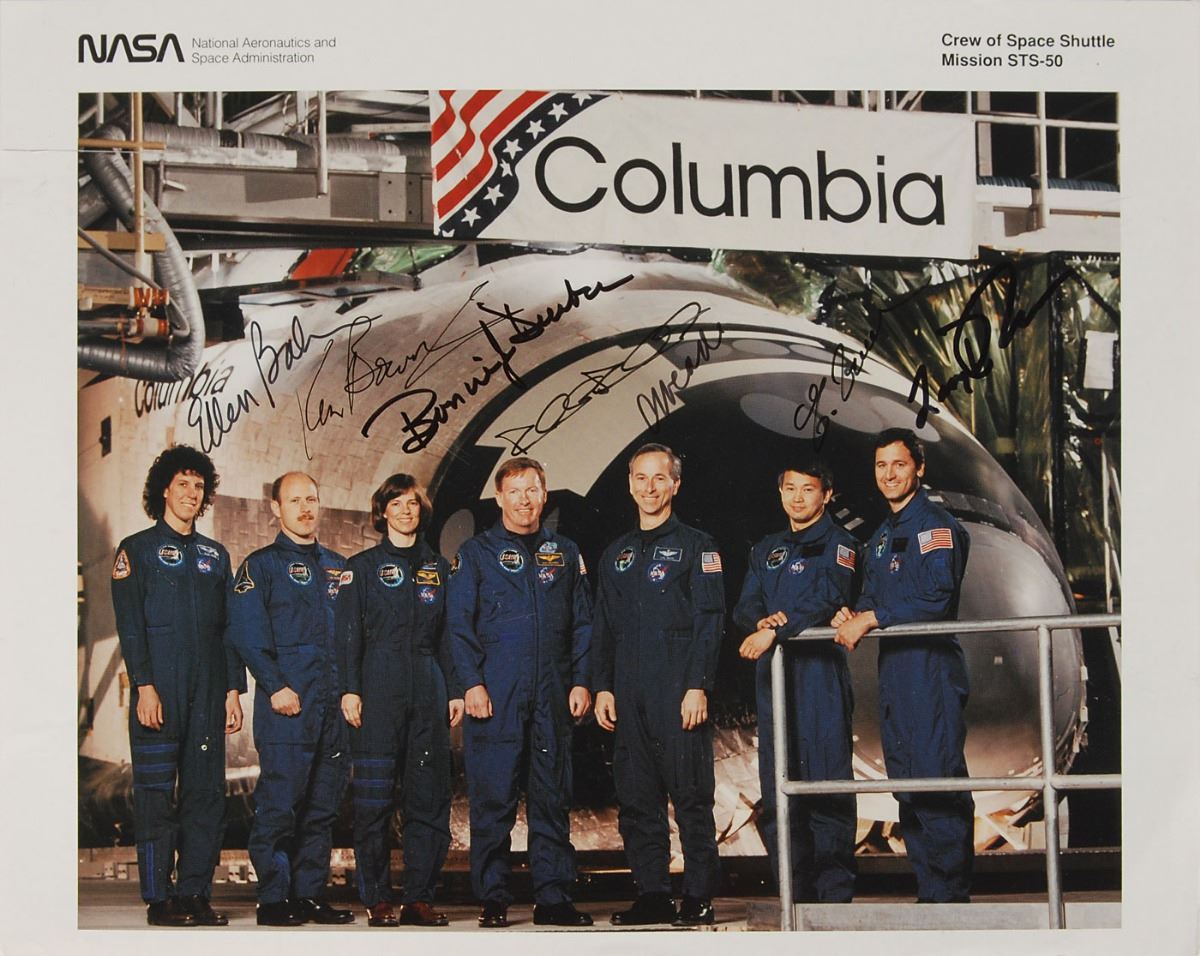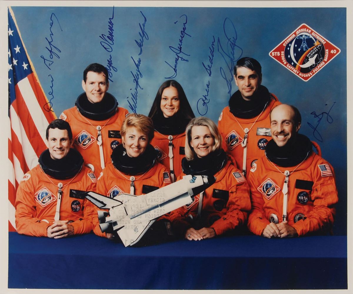 Set of five color 10 x 8 photos of Space Shuttle crews, four of which are official NASA photos, each fully signed in black ink or felt tip by the respective crew, including: STS–40, STS-49, STS-50, STS-51, and STS-55. In overall fine condition.