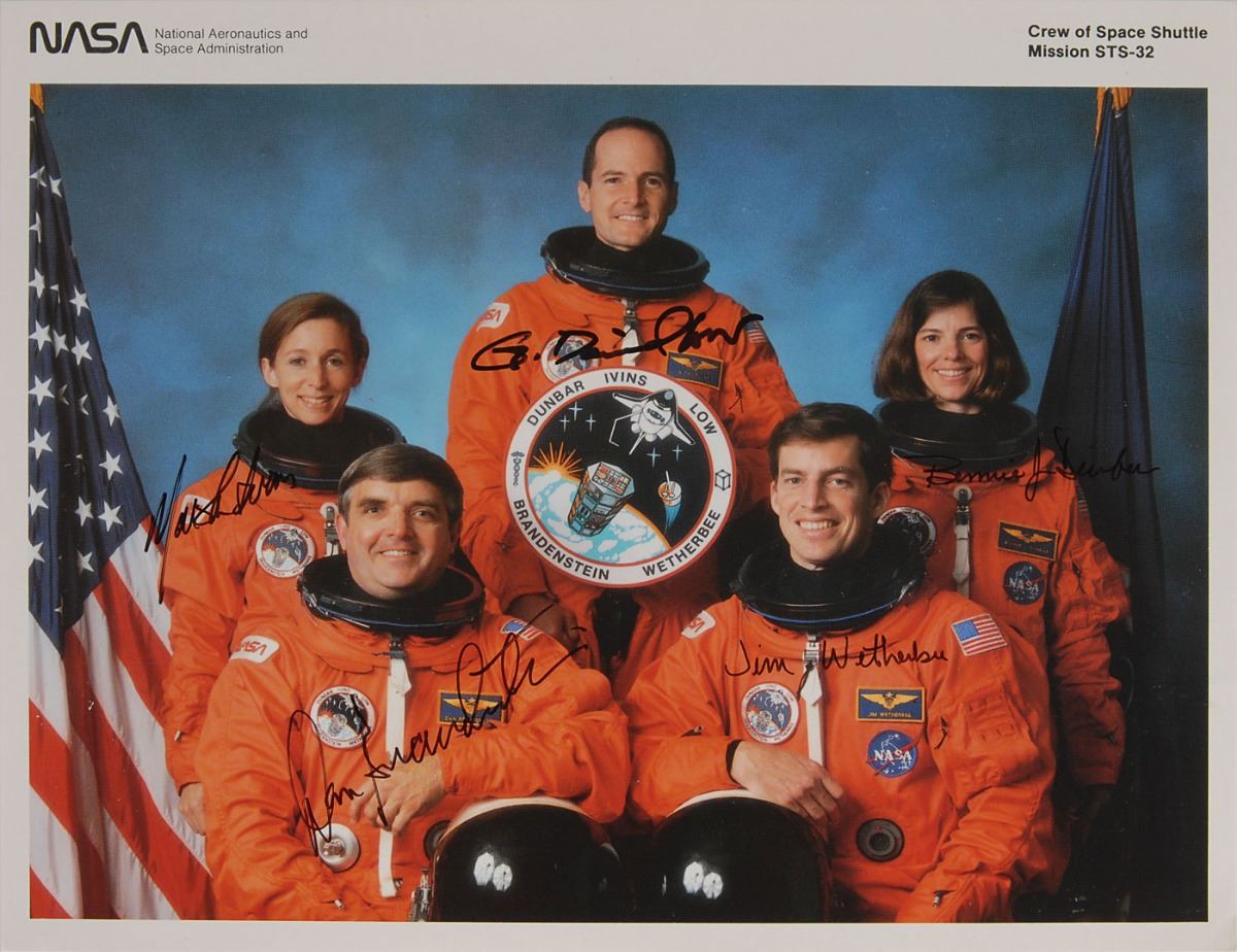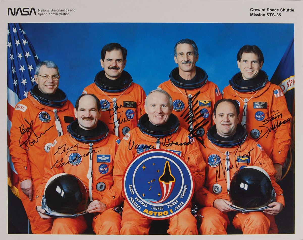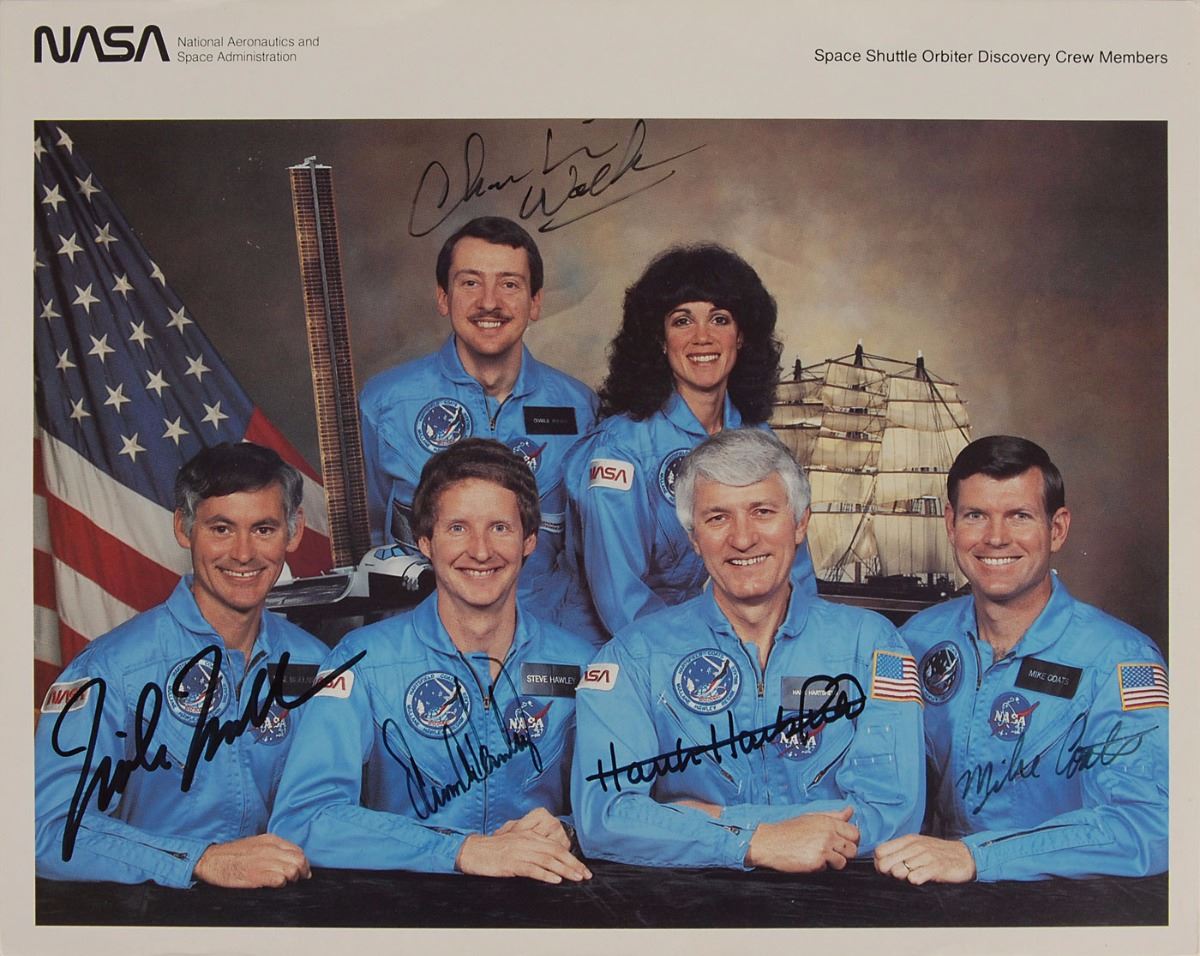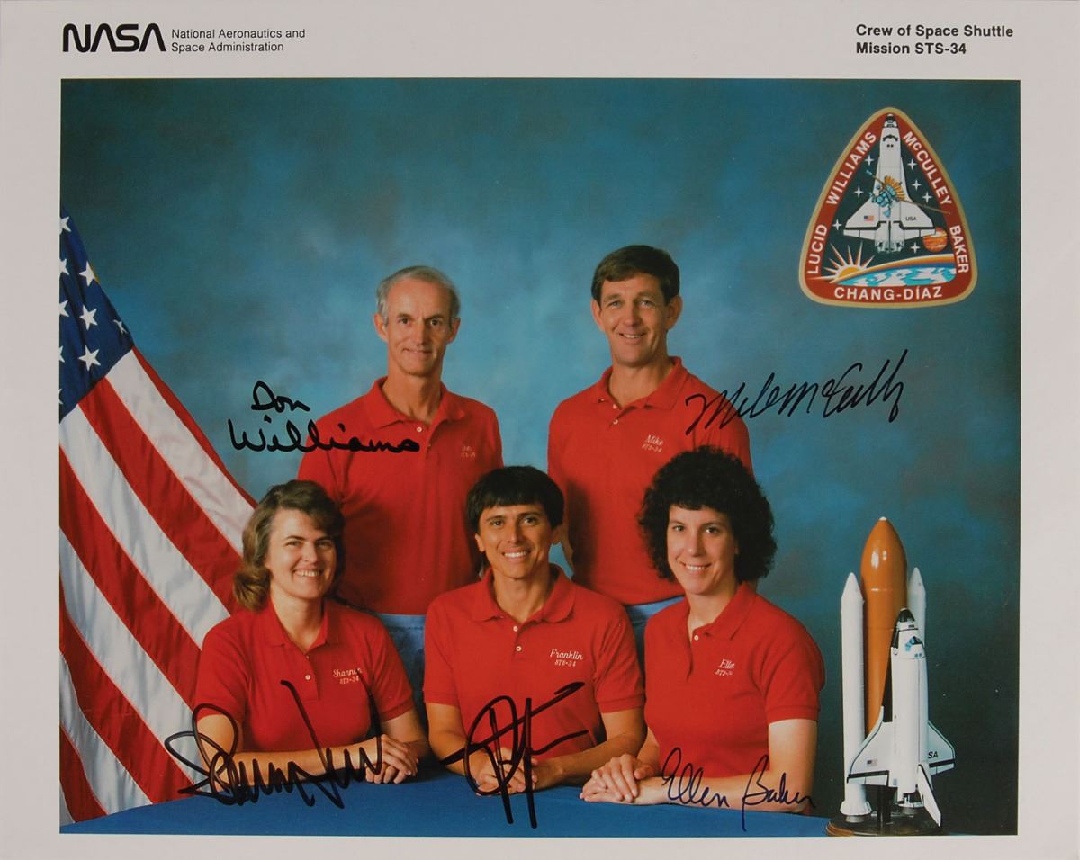 Set of five official color 10 x 8 NASA photos of Space Shuttle crews, each fully signed in black ink or felt tip by the respective crew, including: STS–7, STS-32, STS-34, STS-35, and STS-41-D. In overall fine condition.