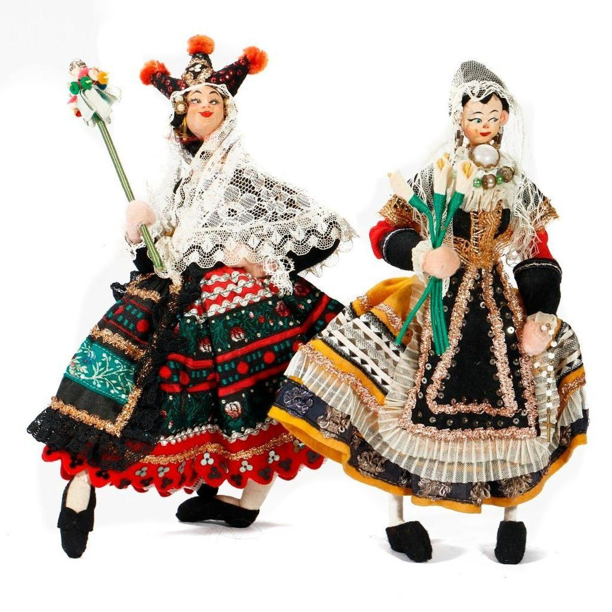 Collection of 5 Spanish Felt Character Dolls, c. 1950s