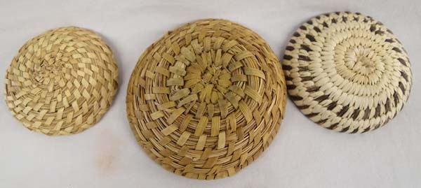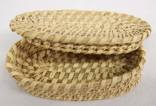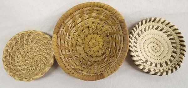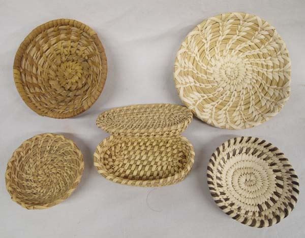 Collection of 5 Native American Tohono O'odham Baskets, largest measures 5''D, small oval one is lidded