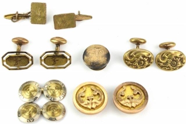 largest round pr. test 14k, small round pr. 10k, others unmarked. Frawley estate item. Est. 250-450