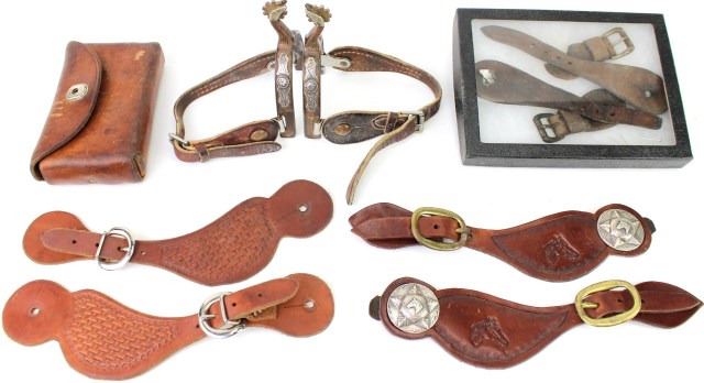 spurs strap marked Shipley KCMS, single mounted goose head spurs and two pair unmarked straps. Est. 100-200