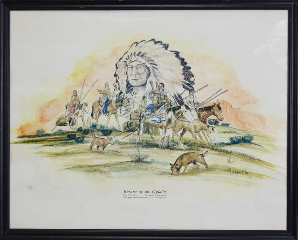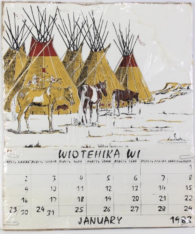 Collection of 5 prints includes 1983 Sioux calendar by Georgann Dewiel, 2) Mick Harrison's, 1) Jack F. Reich and 1) Vic Runnels.1983 Sioux calendar by Georgann Dewiel, 2) Mick Harrison's, 1) Jack F. Reich and 1) Vic Runnels.