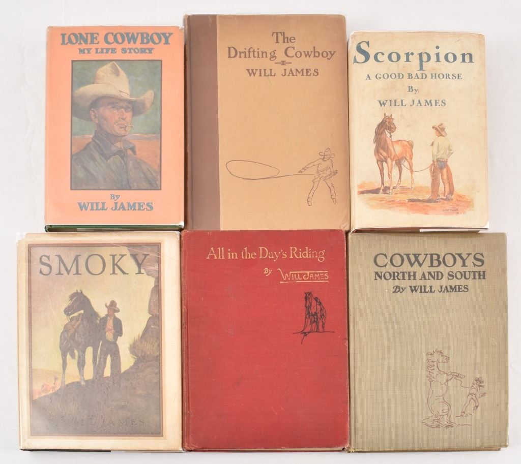 "Scorpion" 1941 edition, very good condition. "Lone Cowboy" 1930 first edition, very good condition. "Smoky" 1929 illustrated edition, very good condition. "Cowboys North and South" 1925 second print. "The Drifting Cowboy" 1926 first edition. "All in the Day's Riding" 1936 third print, very good condition.