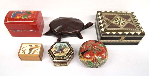 Collection of 6 Trinket Boxes, largest measures 2'' x 4''